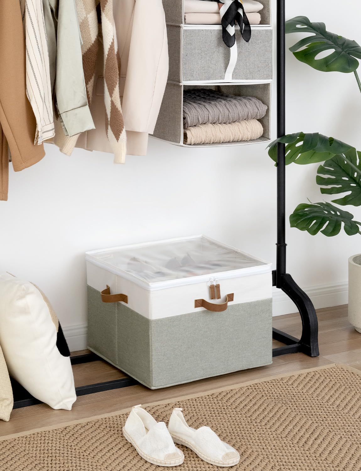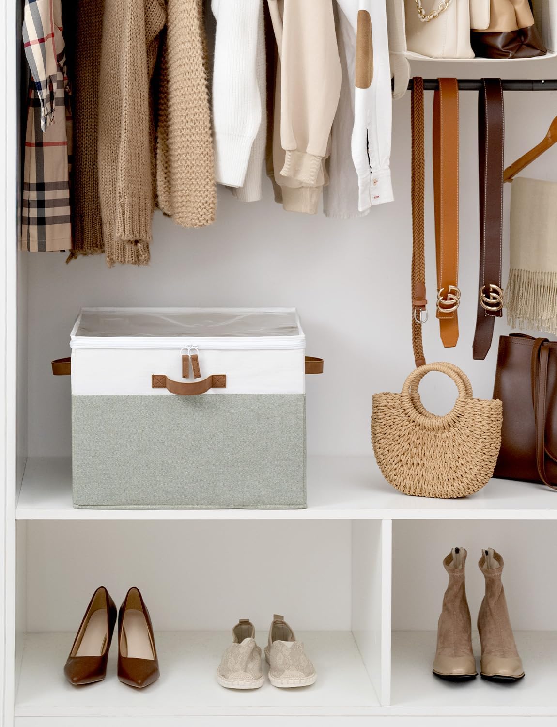 StorageWorks Shoe Organizer for Closet, Fits up to 16 Pairs, Shoe Cubby Storage Containers with Adjustable Dividers and Clear Cover, Green & White
