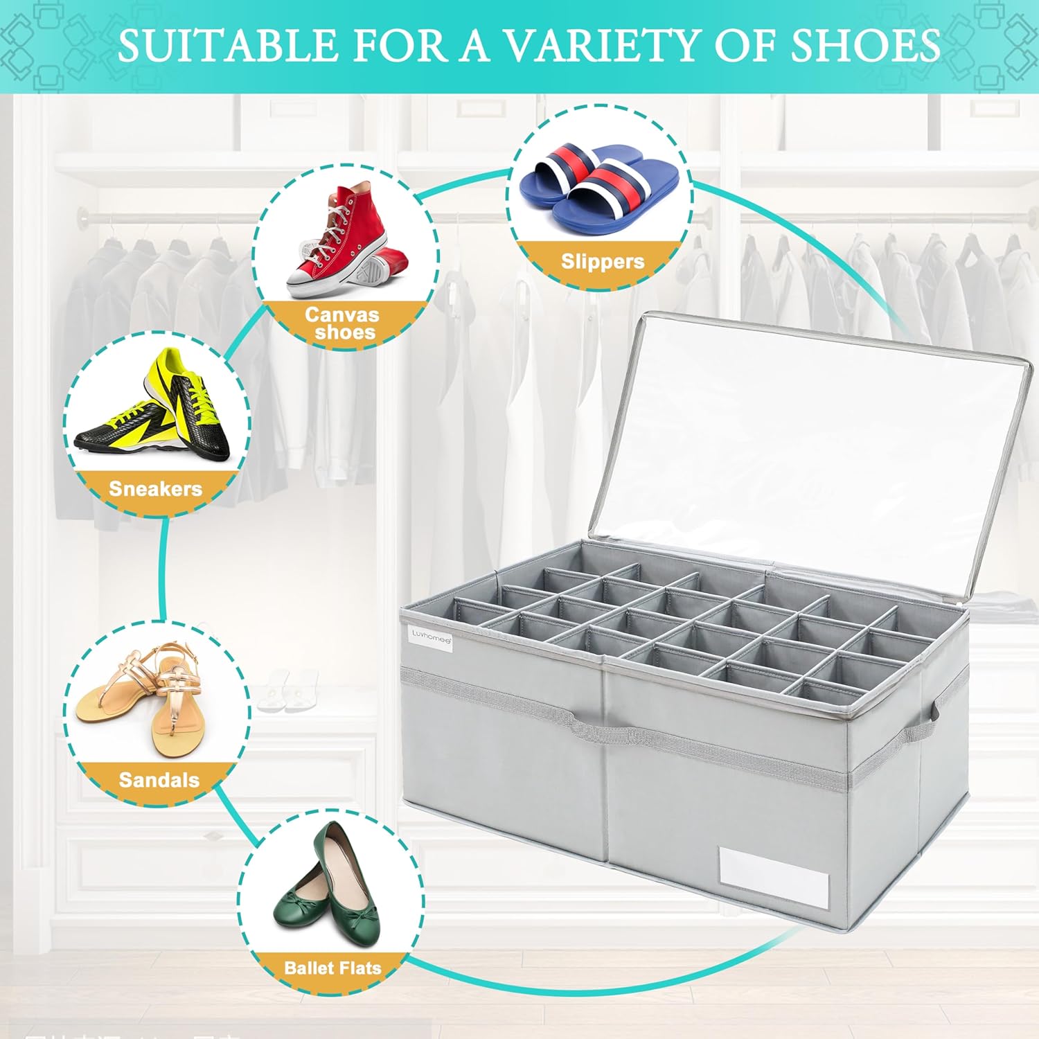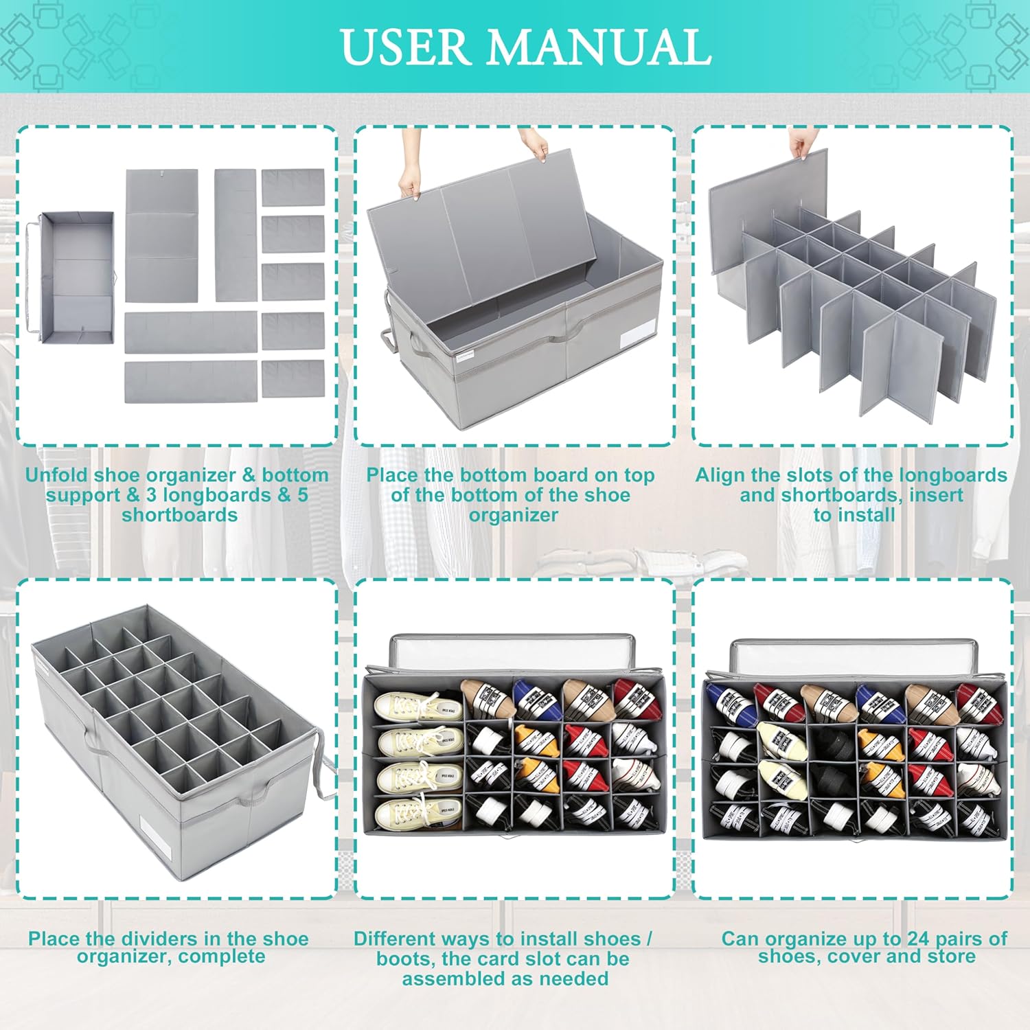 - Ideal Shoe Storage Solution: Shoe racks are nice, but they neither fit so many pairs of shoes nor Dust-proof. This closet shoe bin CHANGES the way for shoe organizers and storage, it won't take up much space but can easily store up to 24 pairs of shoes.