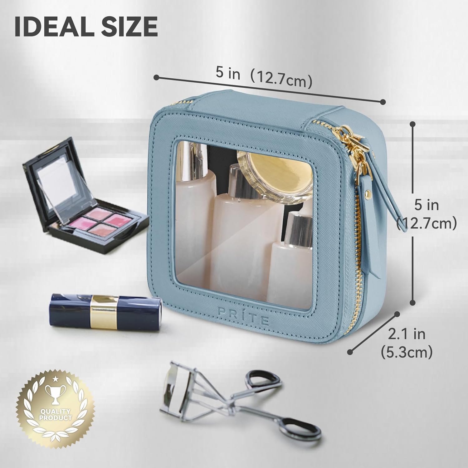 Prite Small Makeup Bag for Women Portable Clear Makeup Bag Cute Mini Waterproof Travel Cosmetic Bag with Gold Zipper for Car Essentials(Blue)