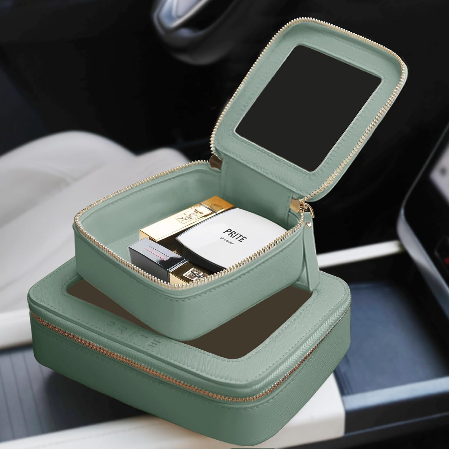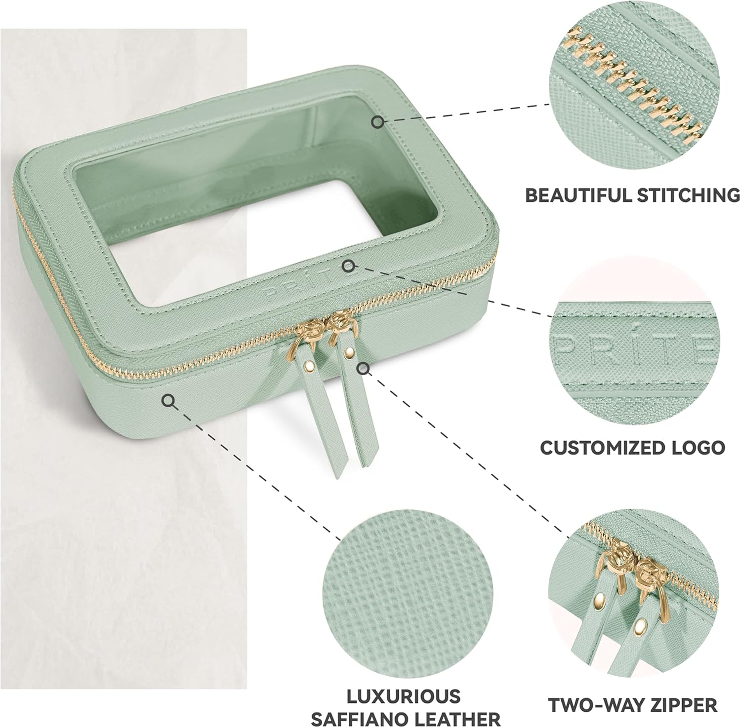 - 【ROOMY & STYLISH】 Measuring 8.3'' x 6.2'' x 2.1'', this makeup travel organizer embodies luxury and style. Its minimalist boxy design in a chic color exudes elegance; Crafted from exquisite Vegan leather and adorned with polished hardware