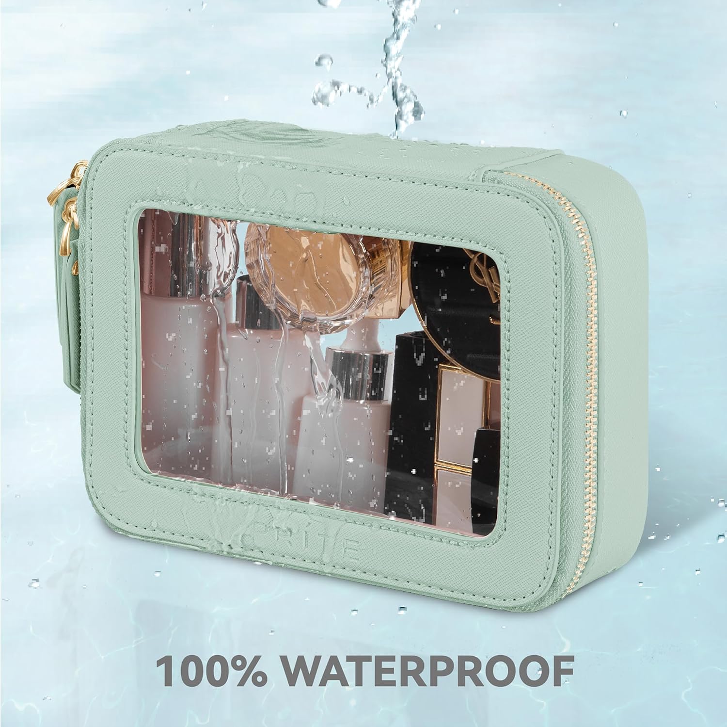 Prite Clear Makeup Bag Cosmetic Organizer Case Waterproof Travel Toiletry Bag Skincare Pouch with Golden Zipper(Green)