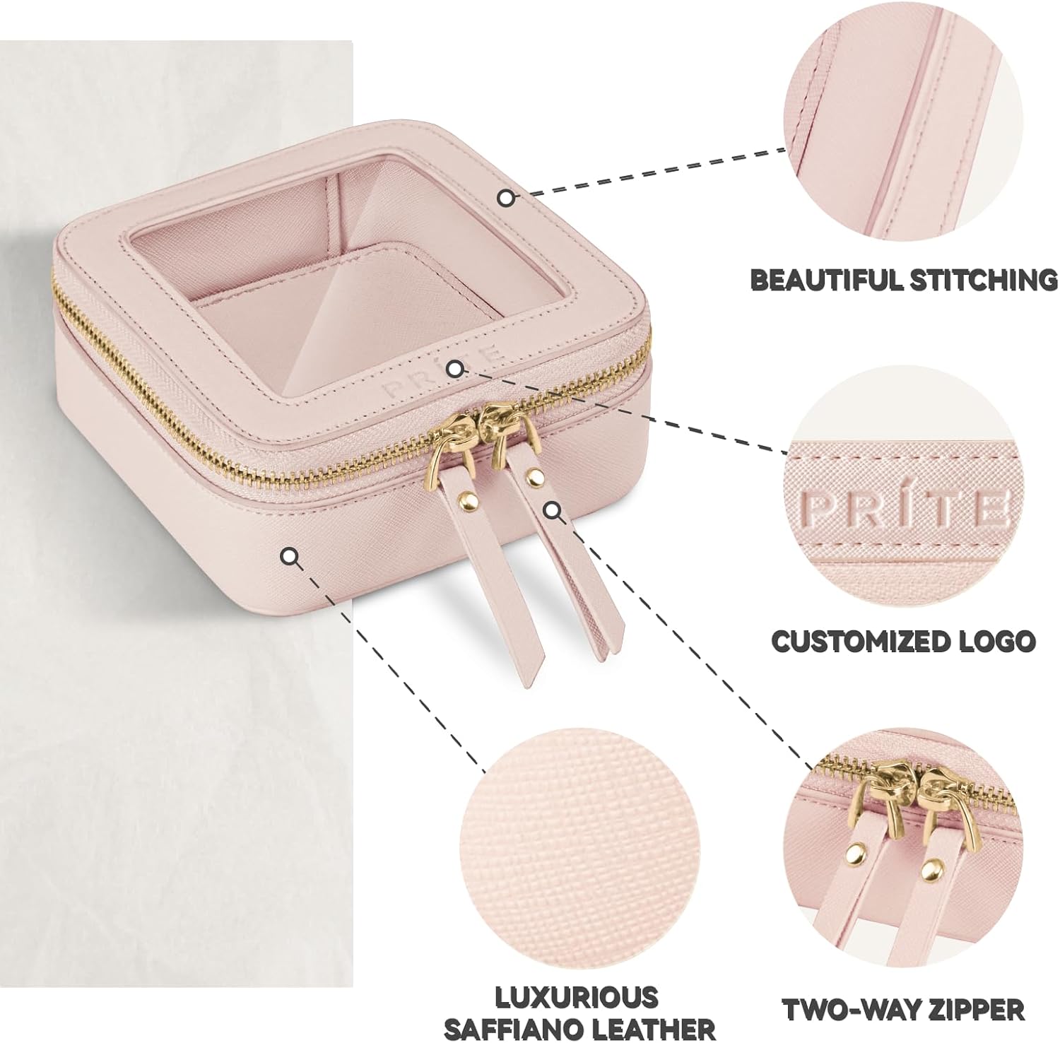- 【ROOMY & STYLISH】 Measuring 5'' x 5'' x 2.1'', this makeup travel organizer embodies luxury and style. Its minimalist boxy design in a chic color exudes elegance; Crafted from exquisite Vegan leather and adorned with polished hardware