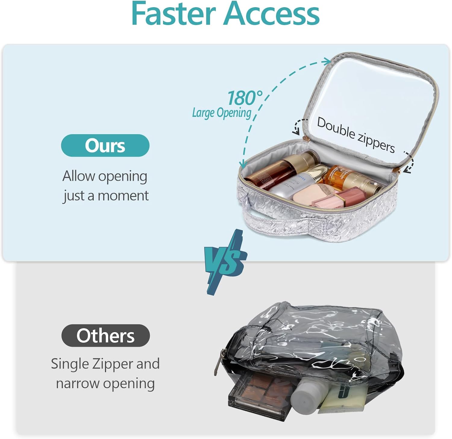 - TSA-approved & hassle-free security checks : This medium clear makeup bag measures 7.8 x 2.3 x 5.9 inches, perfectly complying with TSA’s 3-1-1 liquids rule and breeze through airport security without unpacking; note the large size clear bags for travel (9.8 x 3.1 x 6.6 inches) exceeds one quart and isn’t TSA-approved