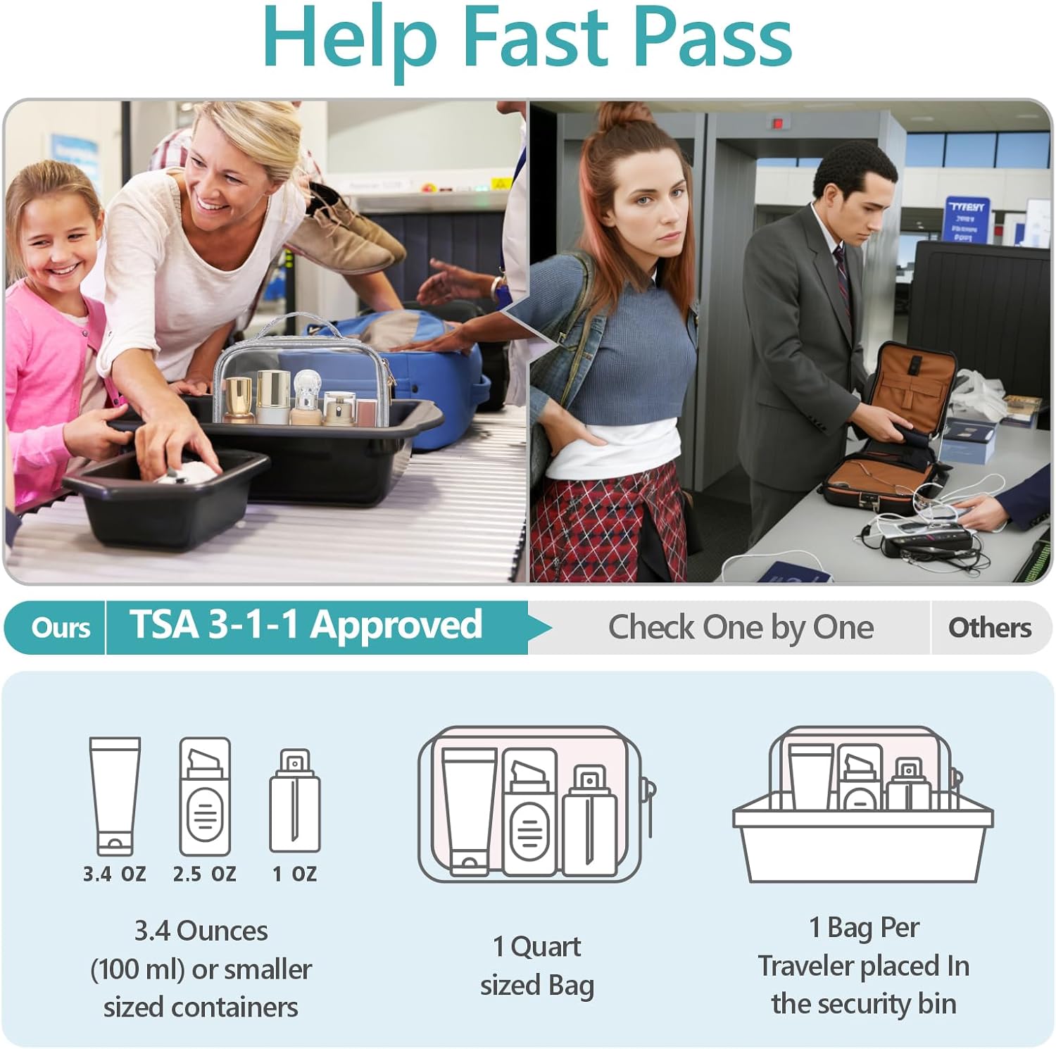 - Transparent Side, Scanning Inside Easily: The clear tsa approved toiletry bag features 0.5mm transparent PVC panels on both sides—no need to unpack for screening. Reinforced splash-proof fabric edges and sturdy stitching prevent leaks and tears, while the rugged design ensures long-lasting use