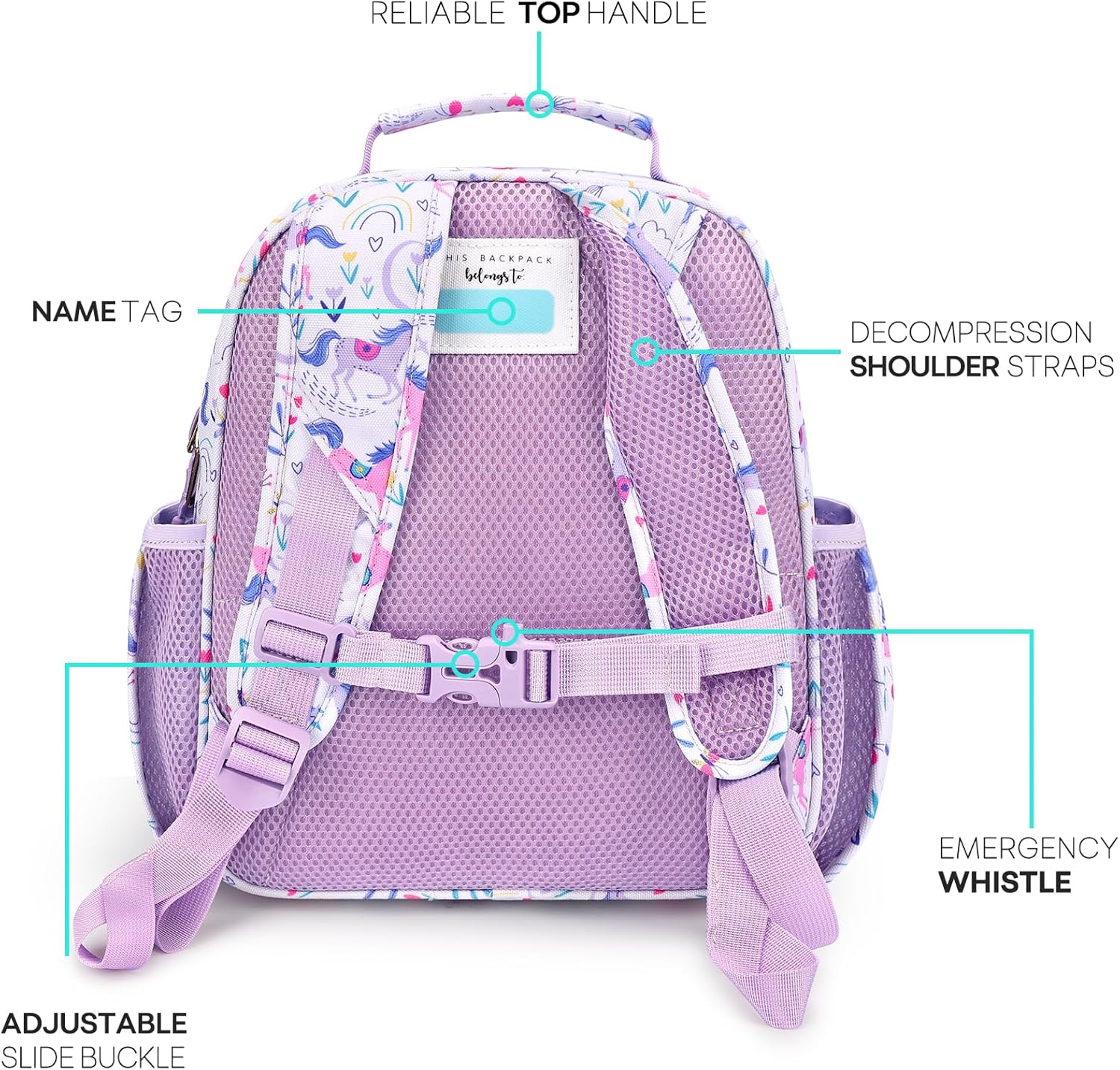 mibasies Toddler Backpack for Girls 2-4: Cute Kids Backpacks for Girls - Preschool Kindergarten Backpack - Unicorn Garden Purple