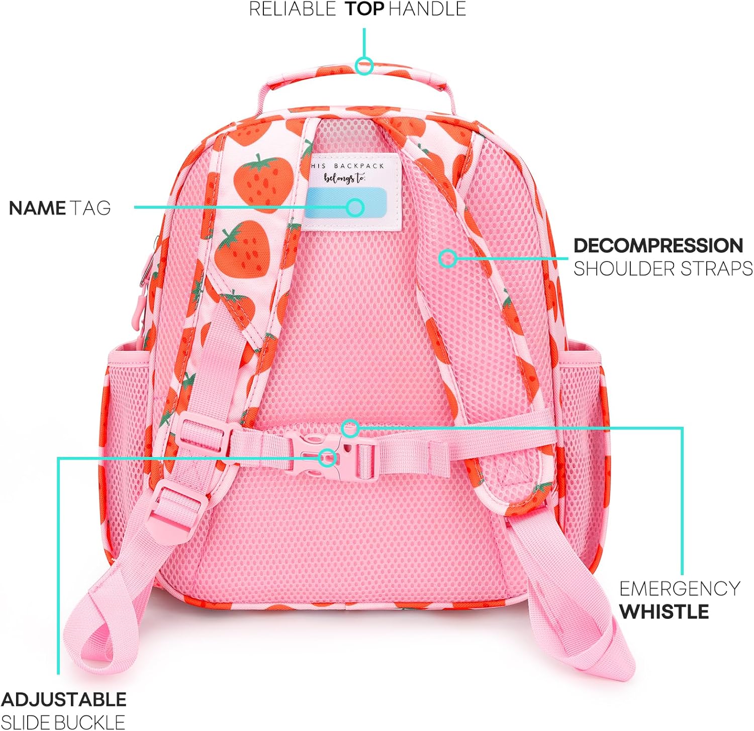 mibasies Toddler Backpack for Girls 2-4: Cute Kids Backpacks for Girls - Preschool Kindergarten Backpack - Strawberry Pink