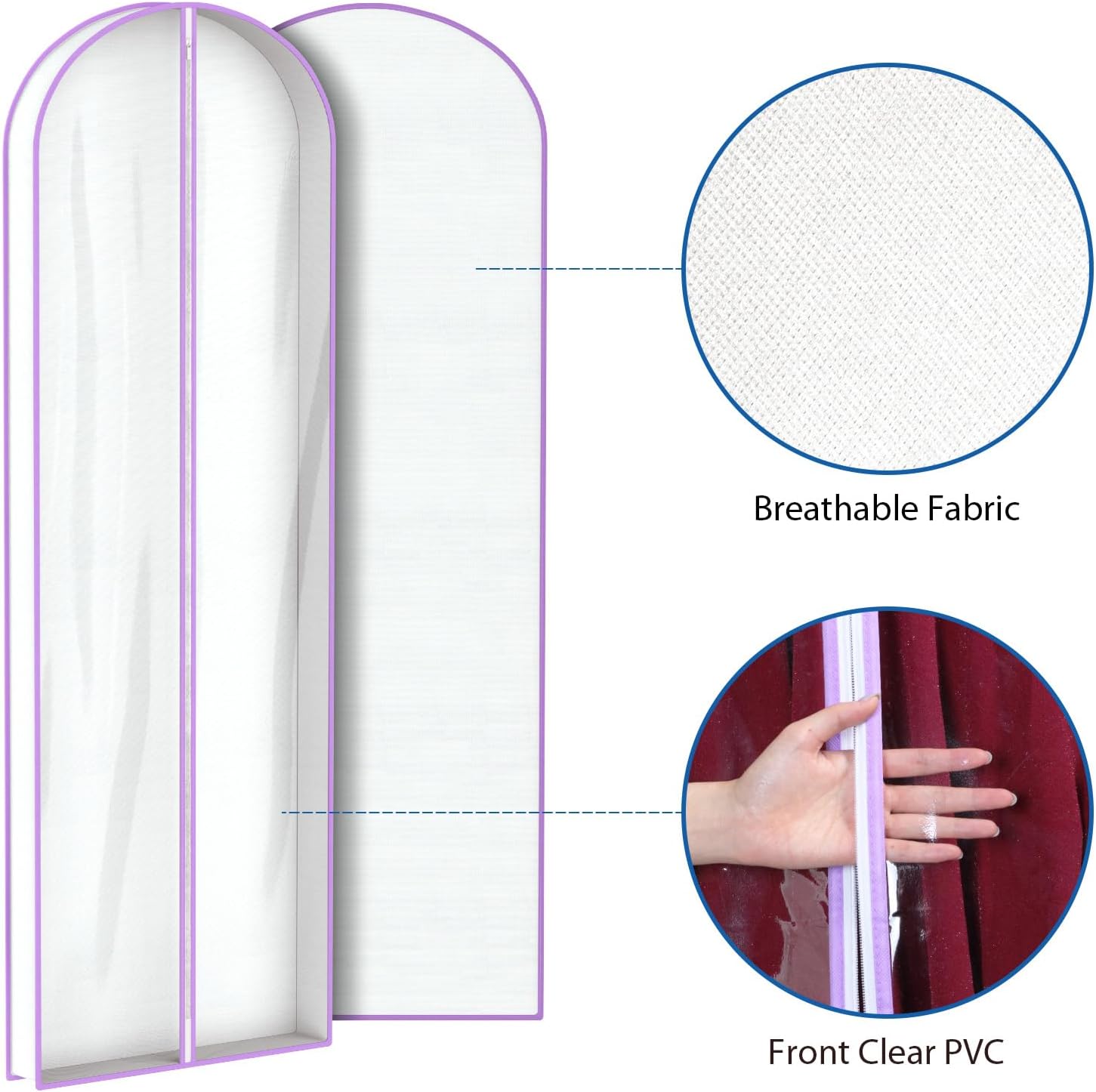 Zilink Breathable Dress Bags for Gowns 72" Clear Wedding Dress Garment Bag Dress Bags for Hanging Clothes with 4" Gussted for Long Evening Dresses, Fur Coat, Long garment Bags for Gowns, Set of 2