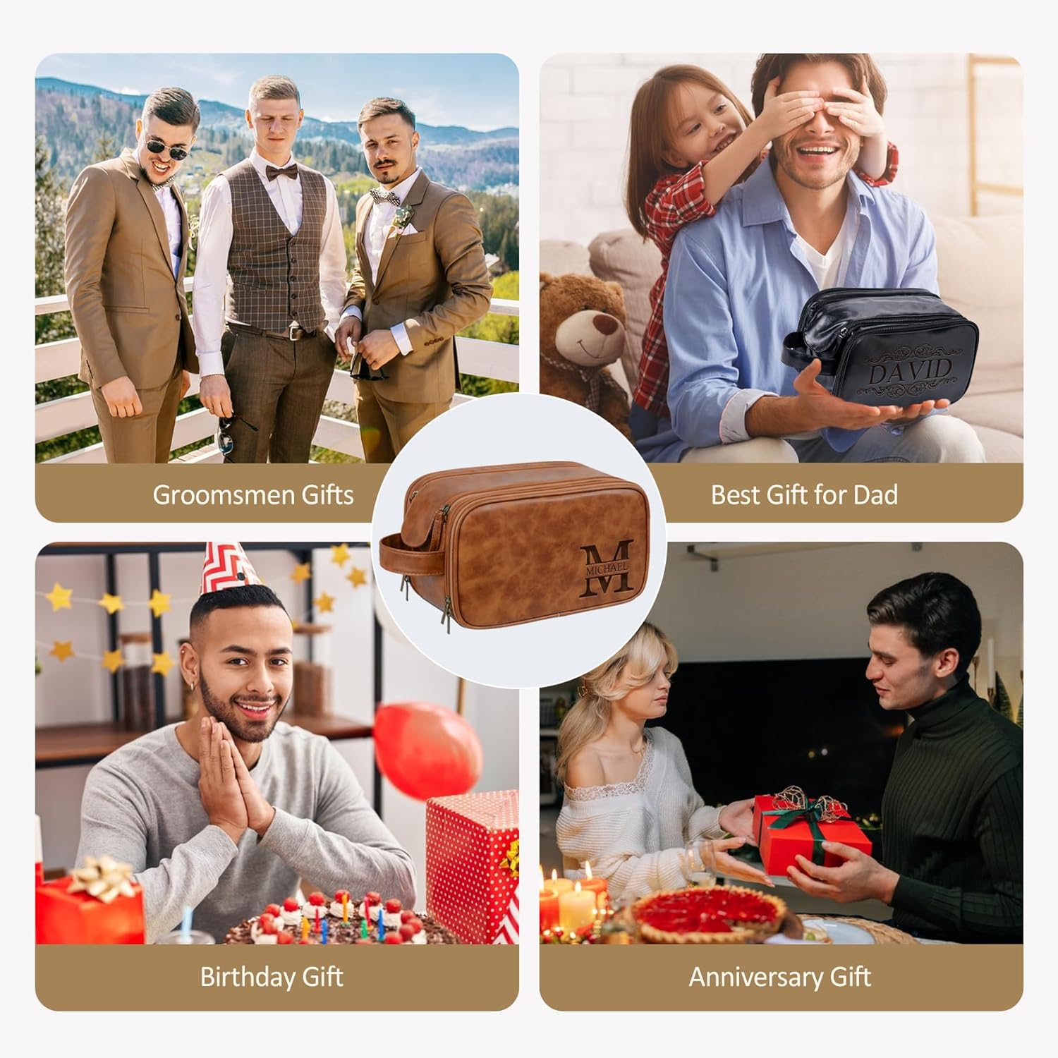 Personalized Leather Toiletry Bag for Men - Double Layer Reinforced Handle,Large Water Resistant Shaving Dopp Kit,Travel Essential,Wedding Groomsmen Gift