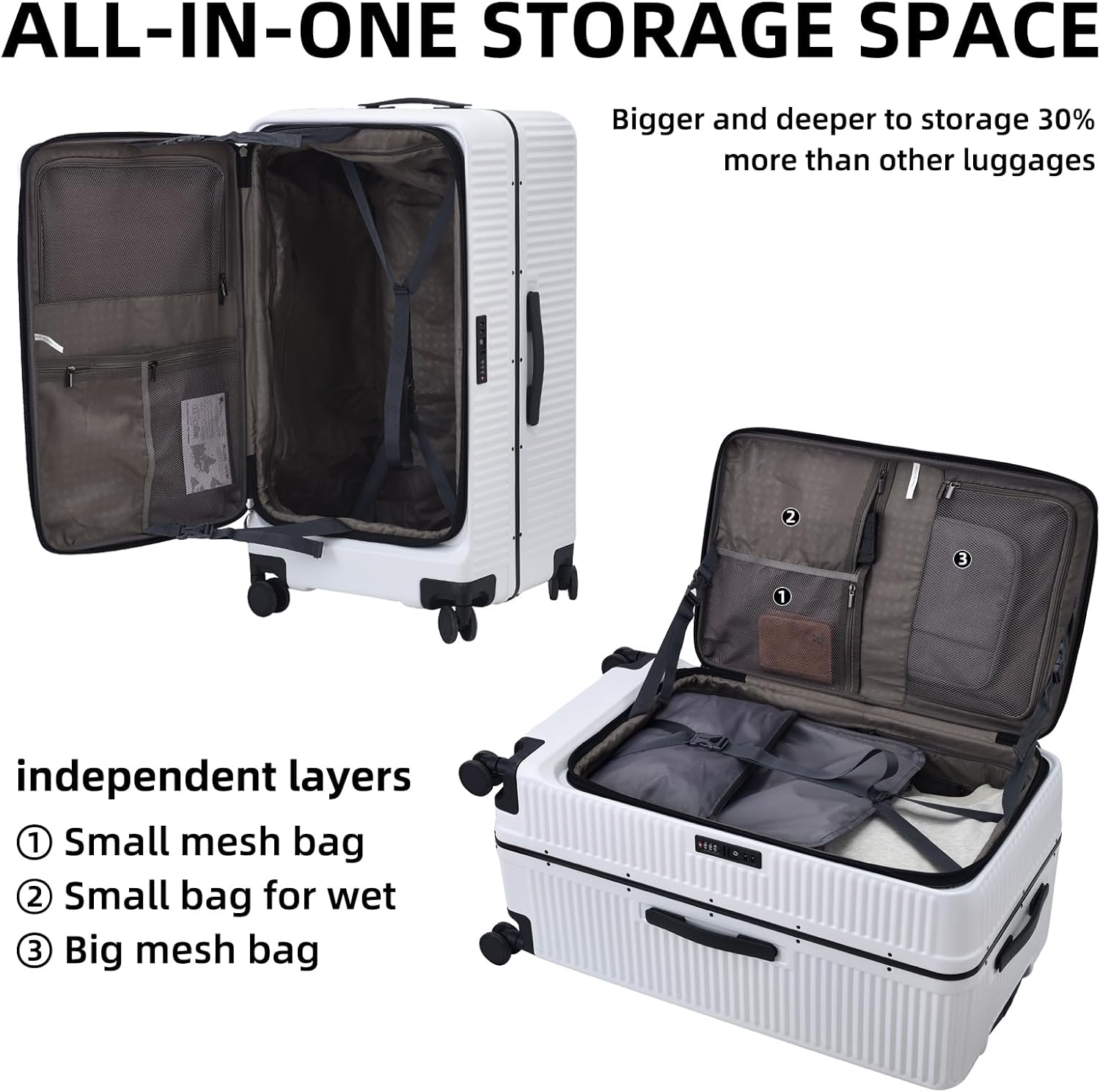 - 29 Inch=Flat Top & Side Opening: Kaleenie 29 inch luggage is designed with flat top side zipper opening, different from traditional middle open suitcase. This design help you to open the suitcase easily and can storage more. All-in-one integrated storage space makes deeper to storage the big items