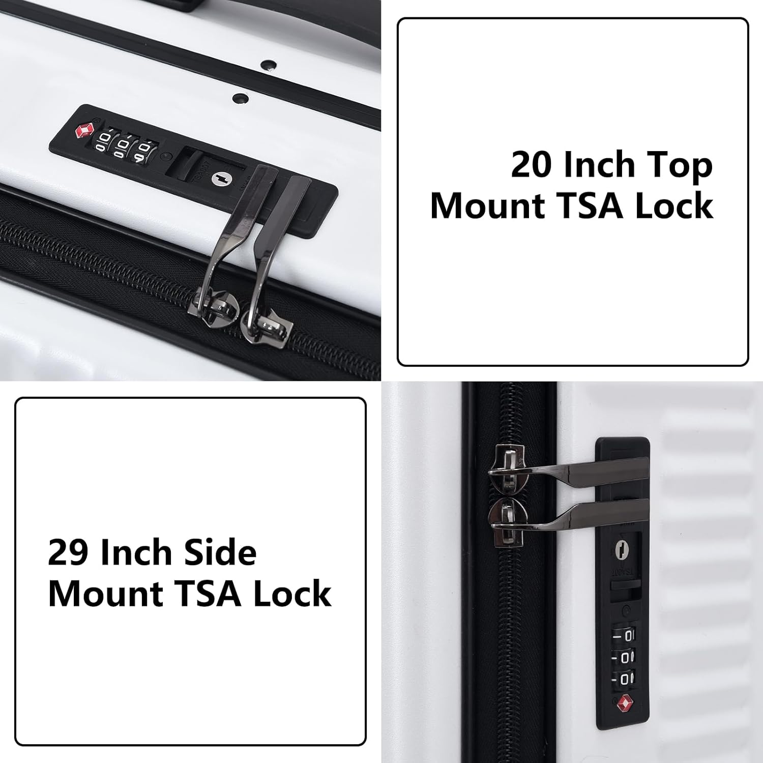 - Carry On Size & Checked Size Set: The 20/29 inch luggage is designed with side opening, fit for 15.6 in laptops or Ipad or books. You can easy to take or put your laptop anytime. For the big capacity it is very convienent for your familly or broad trip