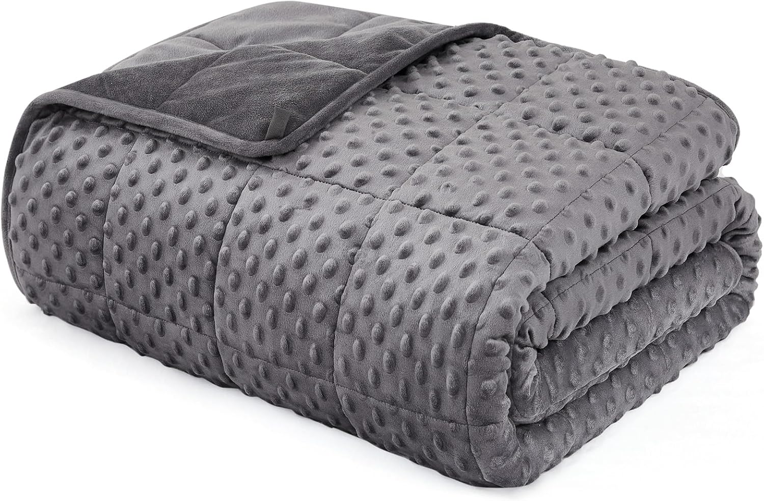 - PREMIUM MATERIAL: The weighted blanket is made of soft breathable minky material and filled with 0.8-1 mm non-toxic hypo-allergenic glass beads, suitable for all seasons. This minky dots weighted blanket could providing a cozy and warm sensation in the winter. Our minky dots weighted blankets are designed with bubble dots to give you an extraordinary tactile experience with their raised dots for added comfort