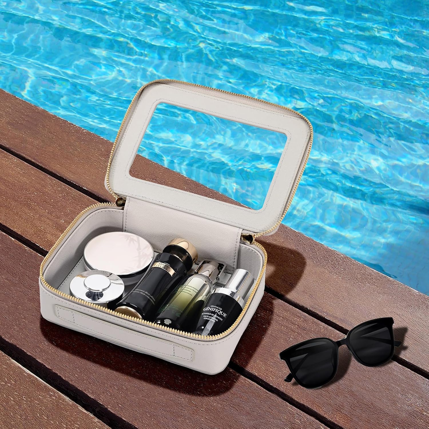 - TSA-APPROVED COMPANION: This makeup travel case is perfect for traveling as it is TSA compliant. The transparent panels help you keep track of everything you've packed. Our cute zipper pouch allows you to travel in style and with ease either at that TSA checkpoint or in of your destination bathroom.Reduce mess with our transparent train case.