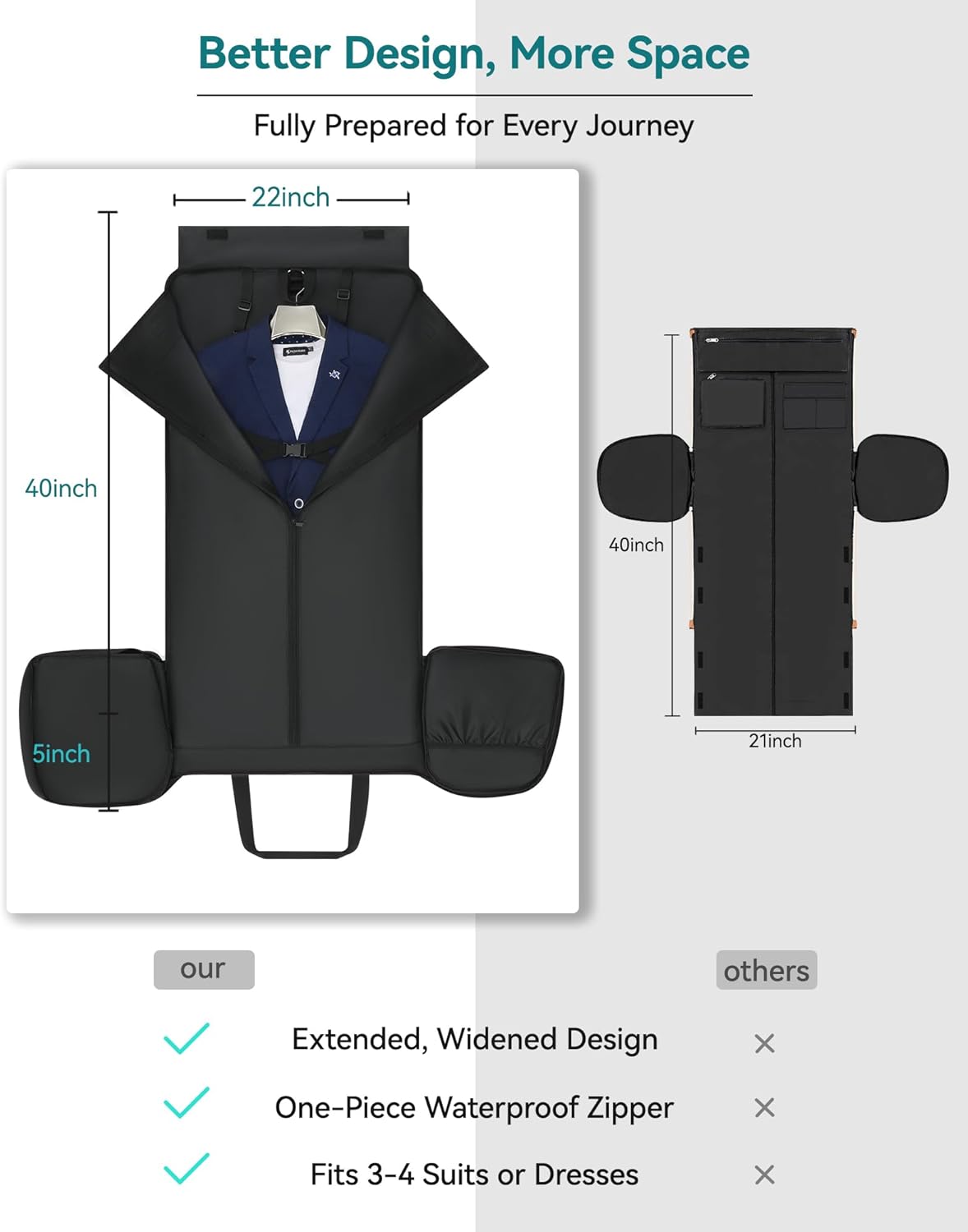 - ๐-๐ข๐ง-๐ ๐๐จ๐ง๐ฏ๐๐ซ๐ญ๐ข๐๐ฅ๐ ๐๐๐ซ๐ฌ๐๐ญ๐ข๐ฅ๐ข๐ญ๐ฒ: Need options? The RFVNL Garment Bag offers three carry modes to suit your needs. Easily switch between a duffle bag, backpack, or shoulder bag with its convertible design. Whether you're dashing through the airport or taking a leisurely stroll, this convertible garment bag for travel adjusts to your lifestyle, providing ultimate convenience and comfort.