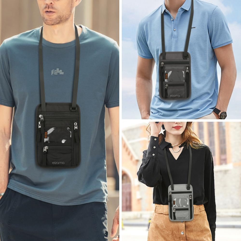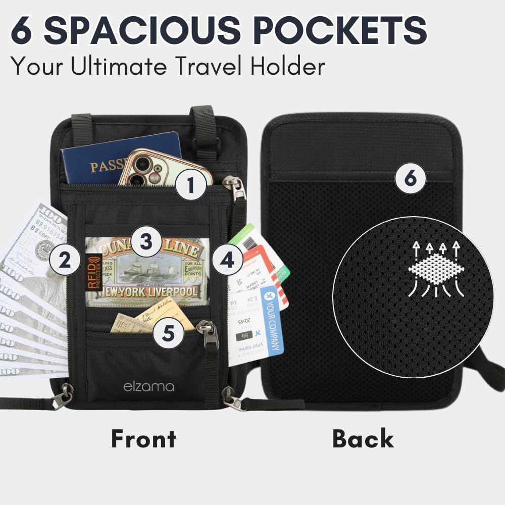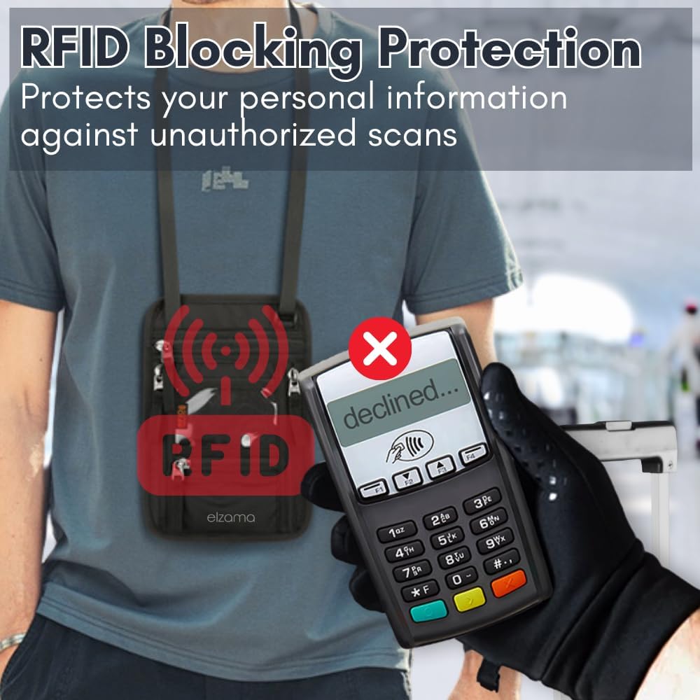 elzama Travel Neck Wallet, Neck Passport Holder, RFID Blocking Passport Wallet Super Slim & Lightweight Travel Pouch Holder for Men & Women (Black)