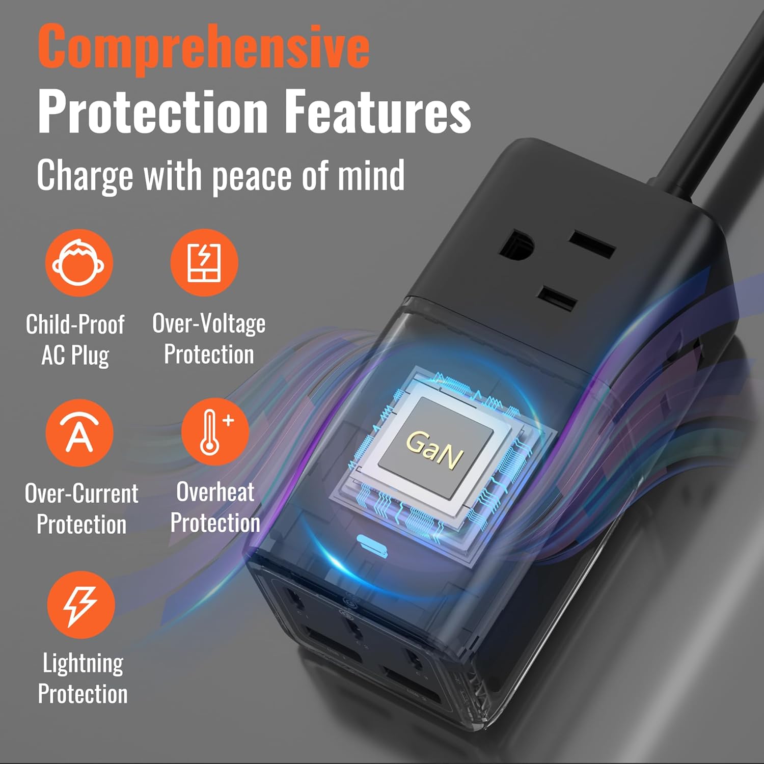 - 110V-240V AC INPUT: The wide input voltage range makes this GaN Charger with AC ports the perfect Travel Charger for international travel and use