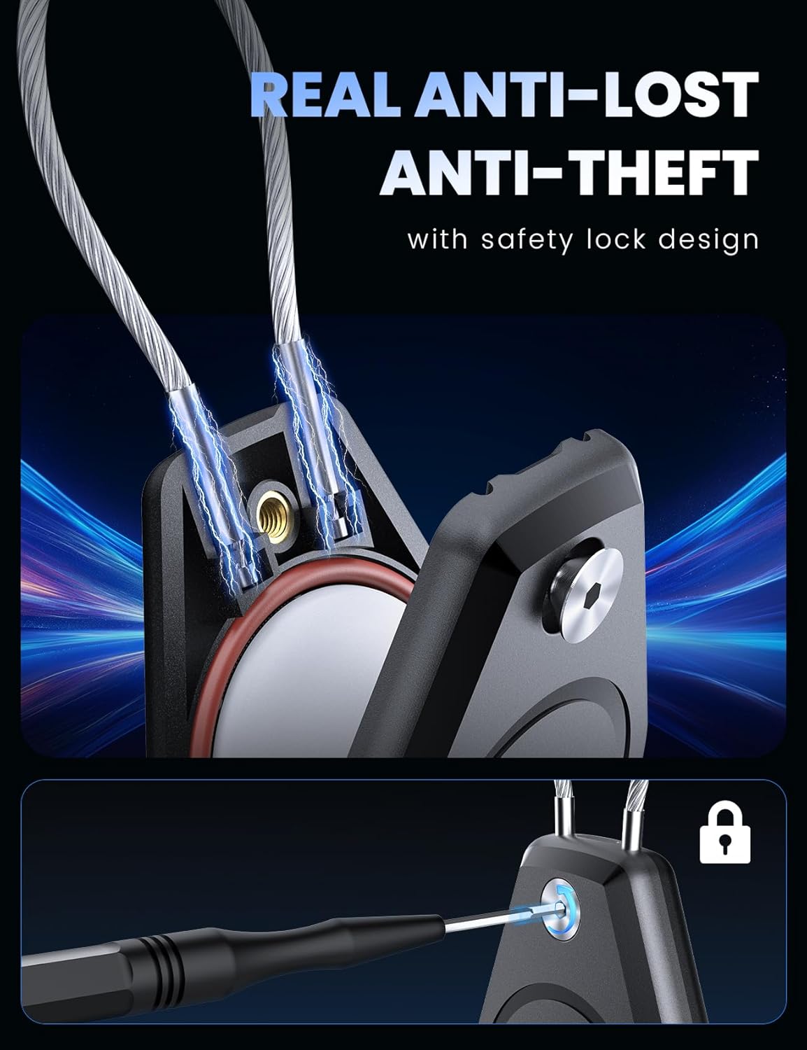 - 🔒Superior Anti-Loss & Anti-Theft Security: Say goodbye to losing your valuables. For Airtag holder features a braided steel cable and screw-lock system, making it nearly impossible for thieves to tamper with or remove. This holder keeps your for Airtag locked tightly, offering unparalleled peace of mind.