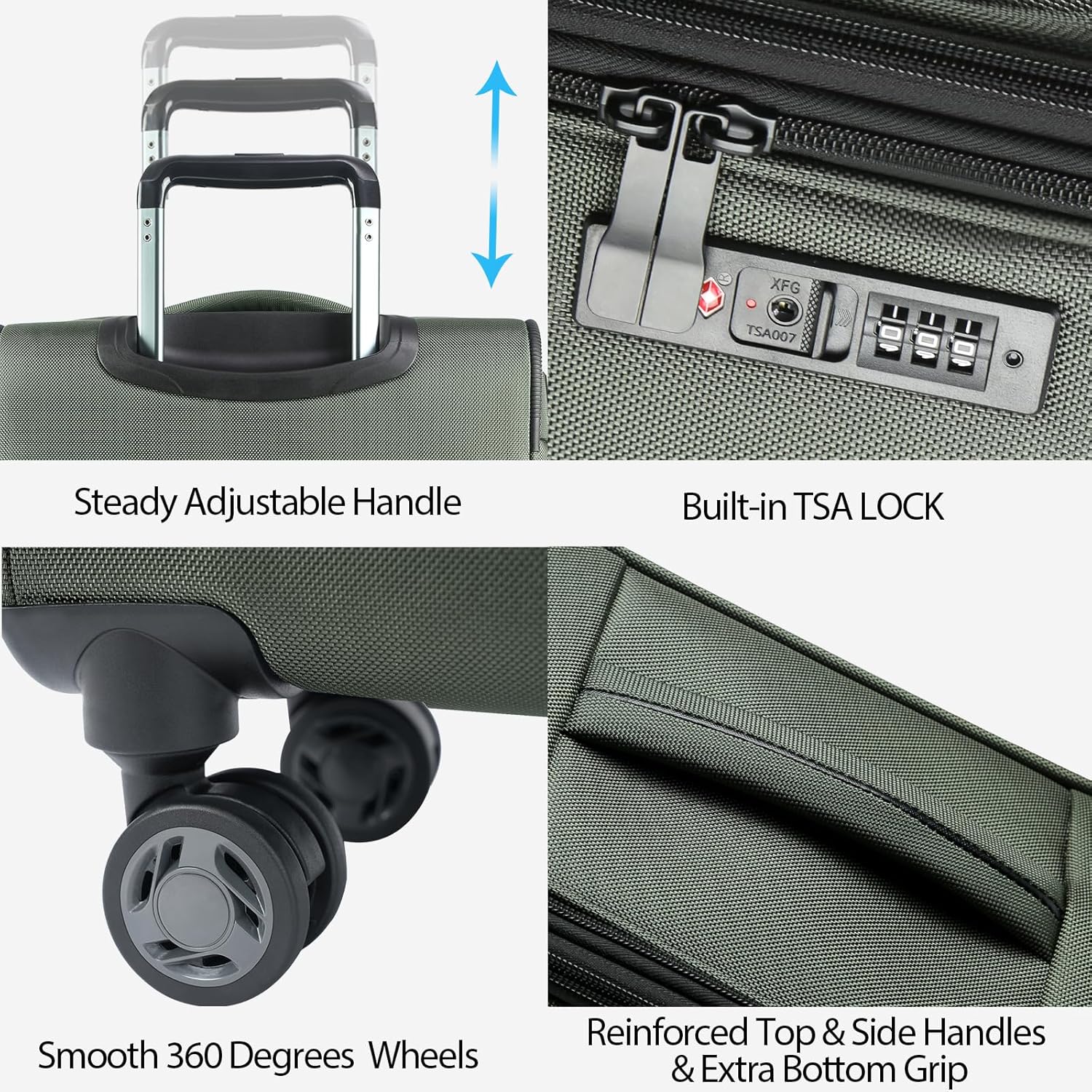 - 【High Quality Accessories】Durable spinner wheels, which are composed of precision shaft center and thickened wheel skin, are very wear-resistant, quieter and have strong bearing capacity. They are applicable to different roads such as cobblestone road and carpet road. Smooth and durable reinforced explosion-proof zipper reverse coil prevents burst zipper. TSA-approved combination lock is safe and convenient. The ergonomic telescopic handle is adjustable in multiple layers.