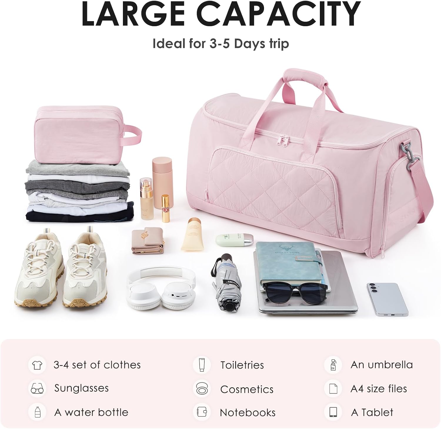 - Multi functional storage: The spacious main compartment is equipped with multiple inner pockets, which can store clothes, hangers, and other daily necessities for 5 days. One side pocket can separate shoes from clean clothes. The front pocket can store small items.
