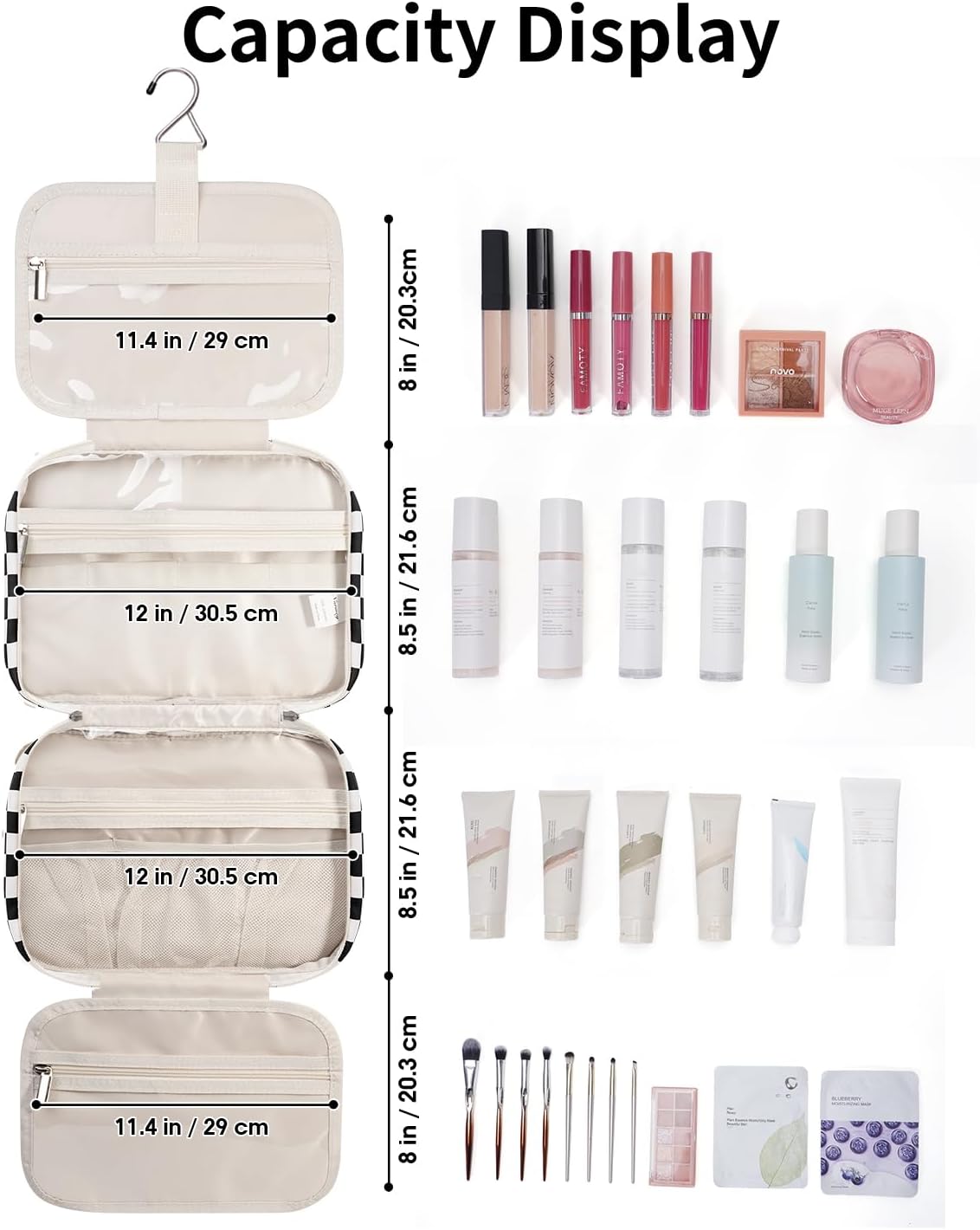 - LARGE VERSION - Fold size 12"x9"x5.5โ/30.5x22x13 cm. We launch larger version to meet large-capacity, which you may choose large or medium size based on your needs. It could easily fit full-size travel essentials like shampoo & conditioner, lotion, face wash, toothpaste, toothbrushes, hair brush and daily makeups