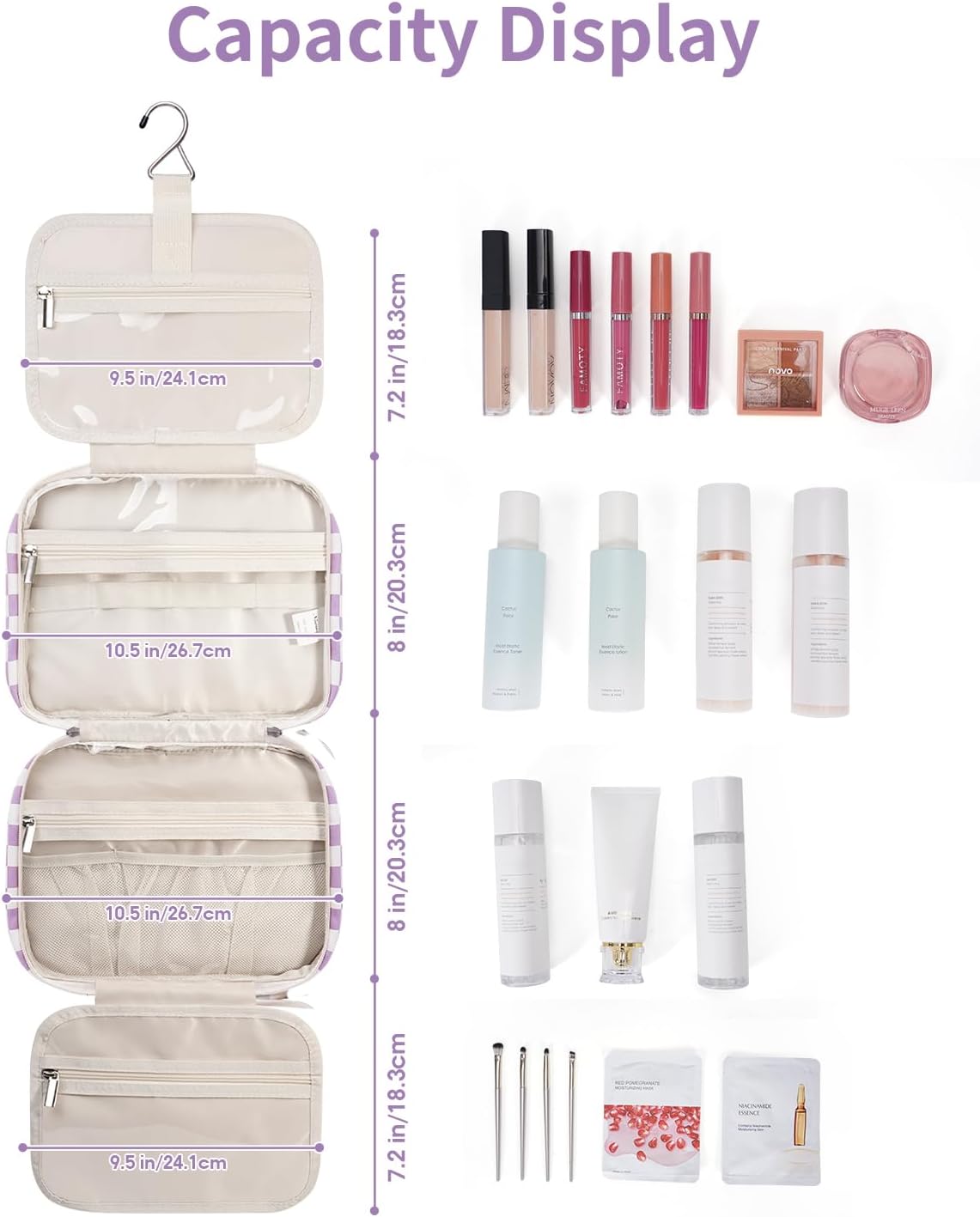 Narwey Hanging Toiletry Bag for Women Travel Makeup Bag Organizer Toiletries Bag for Travel Size Essentials Accessories Cosmetics (Purple Checkerboard (Medium))