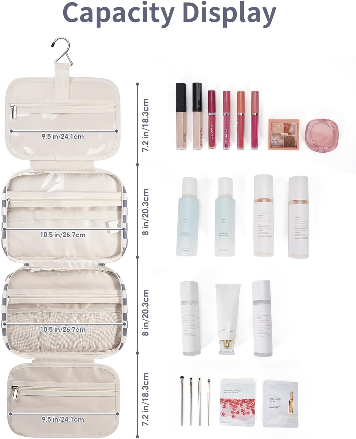 - NOT BULKY DESIGN - Large Capacity yet compact design, weighing 14 ounces. large metal hook allows hanging the toiletry case from towel rack, coat hook or whereever is available, making your toiletries and cosmetics displayed well for easy access