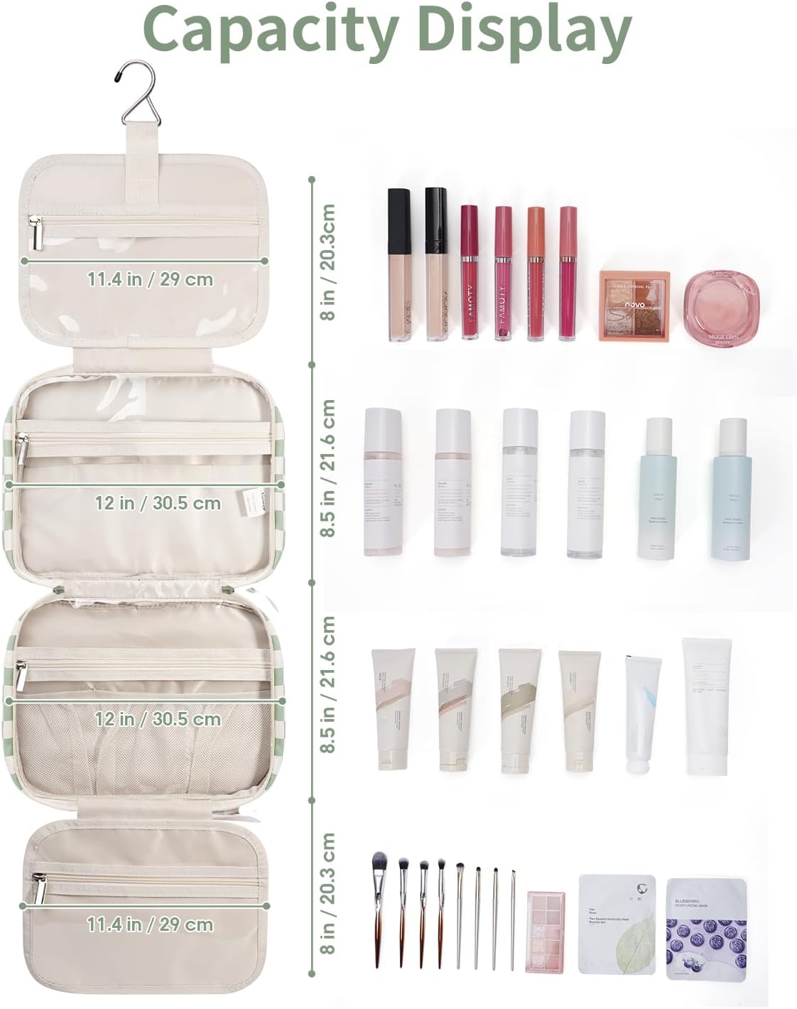 - LARGE VERSION - Fold size 12"x9"x5.5โ/30.5x22x13 cm. We launch larger version to meet large-capacity, which you may choose large or medium size based on your needs. It could easily fit full-size travel essentials like shampoo & conditioner, lotion, face wash, toothpaste, toothbrushes, hair brush and daily makeups