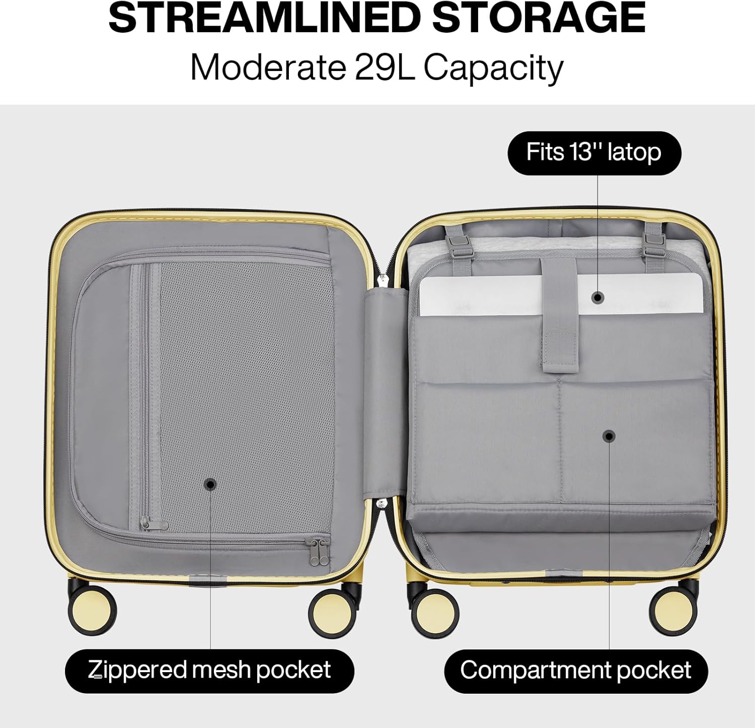 mixi Underseat Carry on Luggage 16 Inch Hardshell PC Suitcase with Spinner Wheels TSA Lock for Travel, Lark Yellow