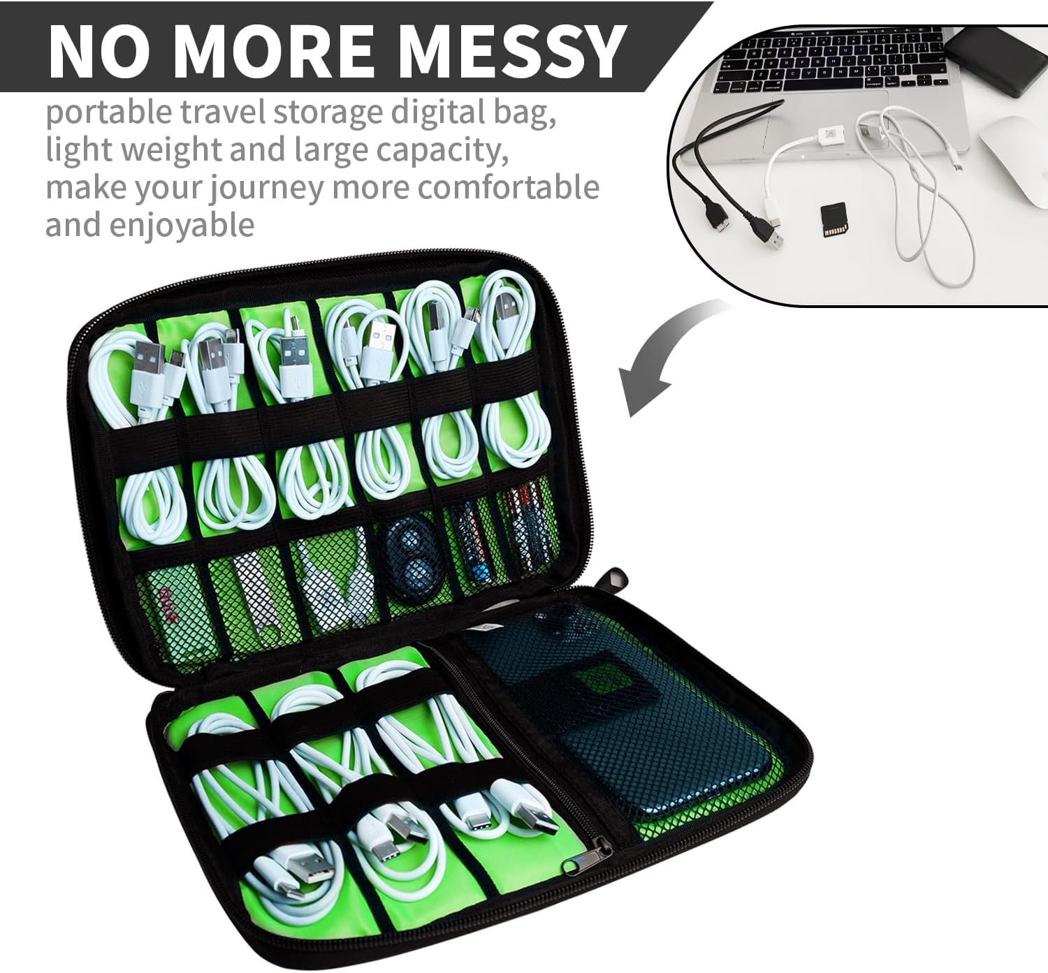 - Thoughtful Design:To solve the messy data lines,our data cable storage bag can great help deal with this bad situation.Different compartments can help you keep your smart digital accessories well organized,including mobile cables,SD cards,cords,chargers