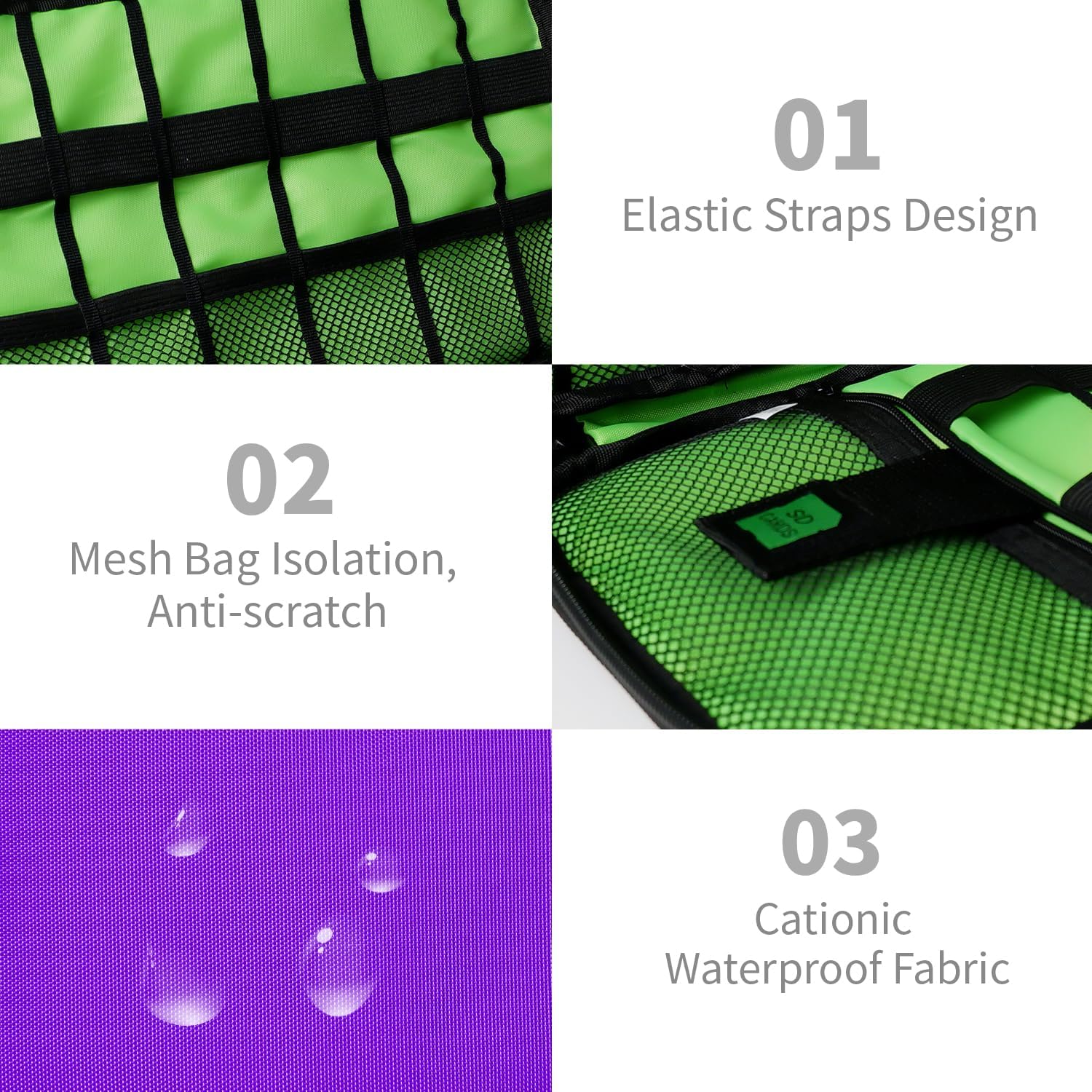 Electronics Travel Organizer,Portable Waterproof Electronic Travel Storage Bag for Small Charging Cord Storage,Charger,SD Card etc,for Travel,Business-Purple Green