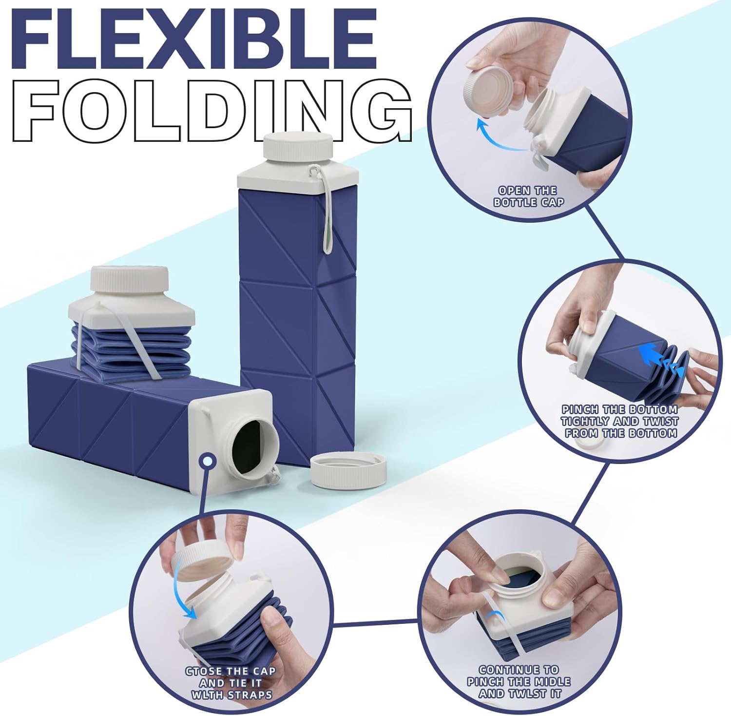 24oz Collapsible Water Bottles 2pcs,Food grade BPA Free Reusable Foldable Water Bottle Lightweight LeakProof for Travel Hiking Camping Gym Outdoor Sport,Collapses Folding Water Bottle 2pack