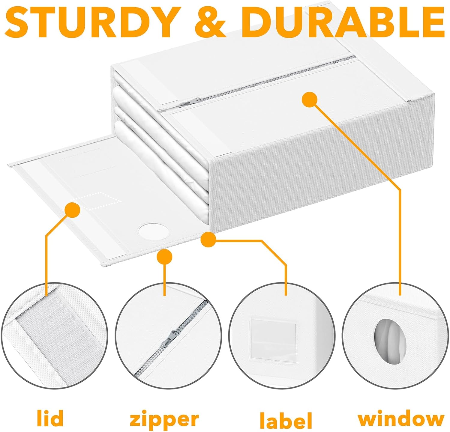SpaceAid 3 Pack Bed Sheet Organizers and Storage, Foldable Sheet Organizer for Linen Closet, Sheets Set Folder Keeper with Window XL (Queen & King Size) Bedding Container (White, 3 Pack)
