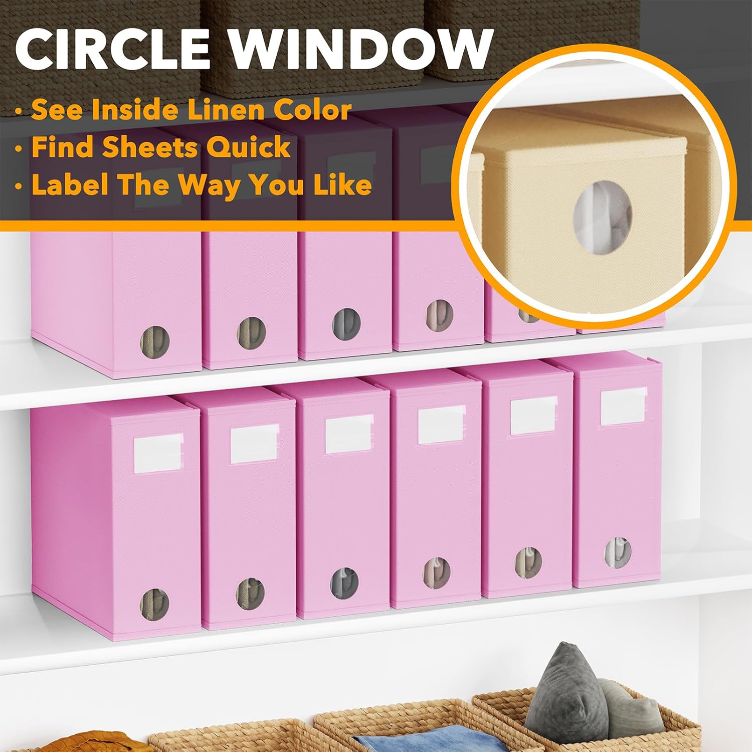 - PINK SHEET ORGANIZERS 12 PACK - Make your linen closet organized and beautiful with this foldable bed sheet fabric organizer; Each Storage Organizer SIZE: 5"W x 15"D x 12.8"H