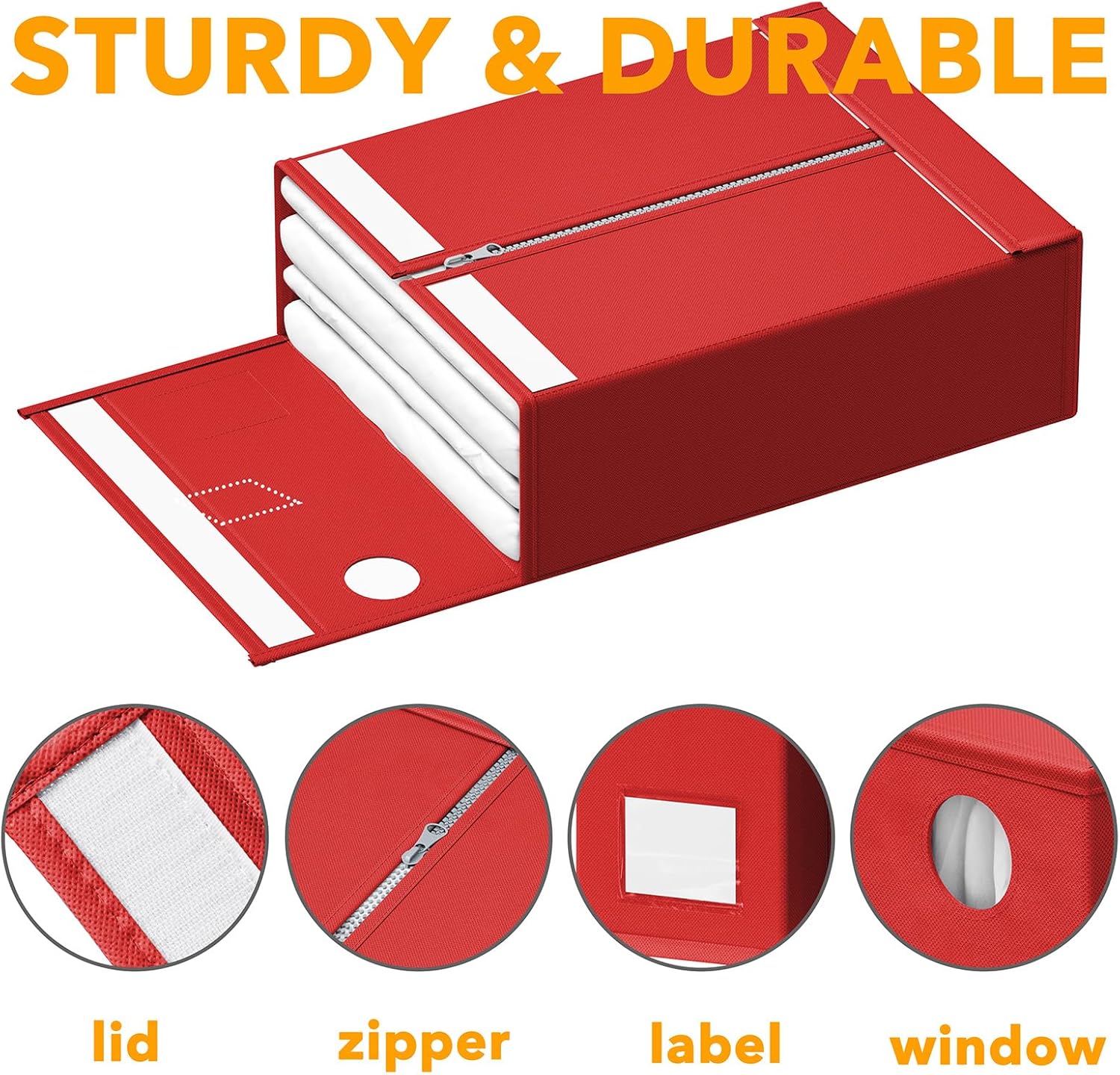 SpaceAid 3 Pack Bed Organizers and Storage, Foldable Sheet Organizer for Linen Closet, Set Folder Keeper With Window XL (Queen & King Size) Bedding Container (Red)
