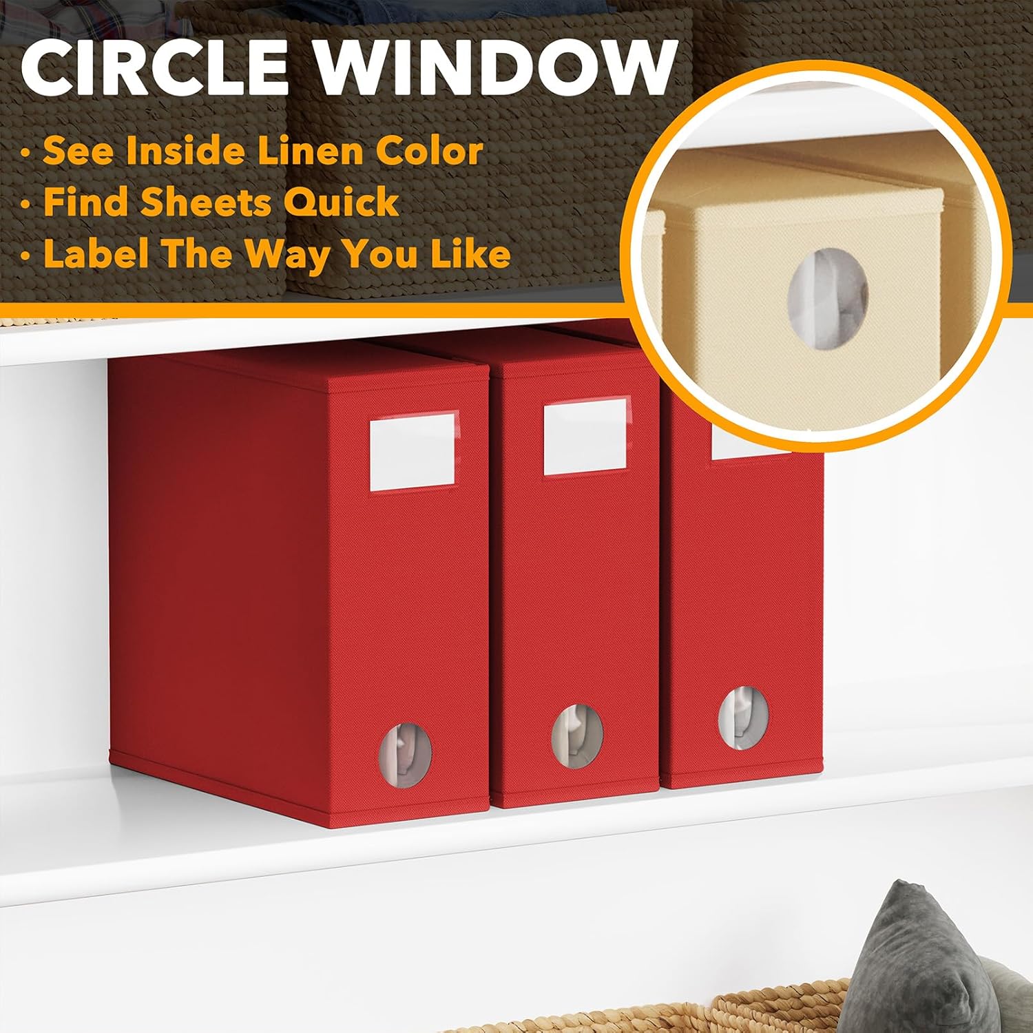 - RED SHEET ORGANIZERS 3 PACK - Make your linen closet organized and beautiful with this foldable bed sheet fabric organizer; Each Storage Organizer SIZE: 5"W x 15"D x 12.8"H