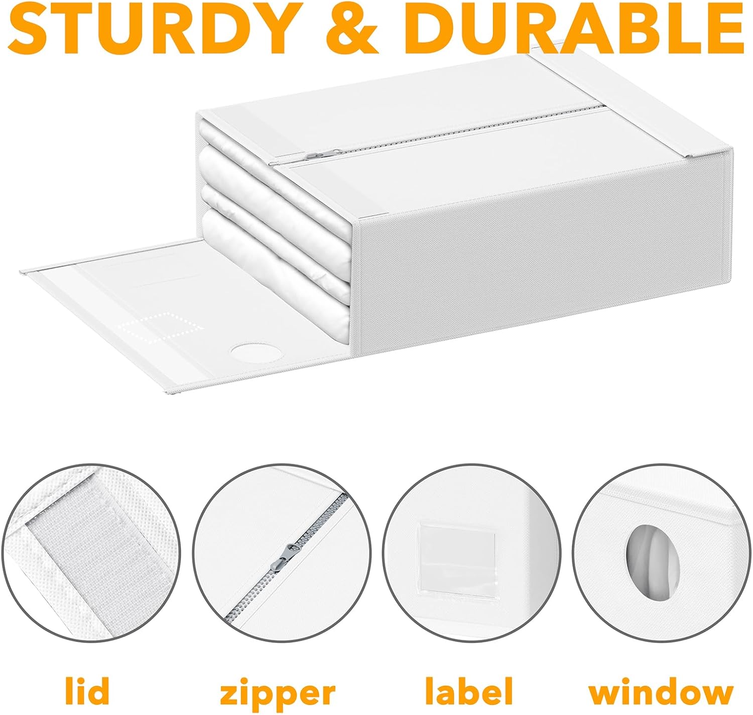 - EASY TO FOLD AND USE - Each foldable bedding sheet set organizer is super easy to use; You can fold your sheets first and put them in the center, then zip, close, label and finish