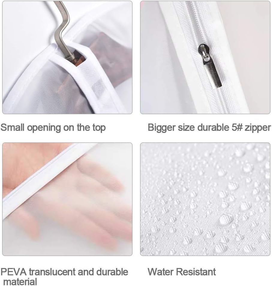 - 📣【DURABLE & LONG-LASTING】:Made of soft and durable PE material with a thickness of 50gsm, This upgraded version garment bags for storage is washable, lightweight and built to last. Dustproof and water-resistant plastic garment bags protect your delicate clothes against dampness, dust, pet hair, and keep them fresh and wrinkle free!