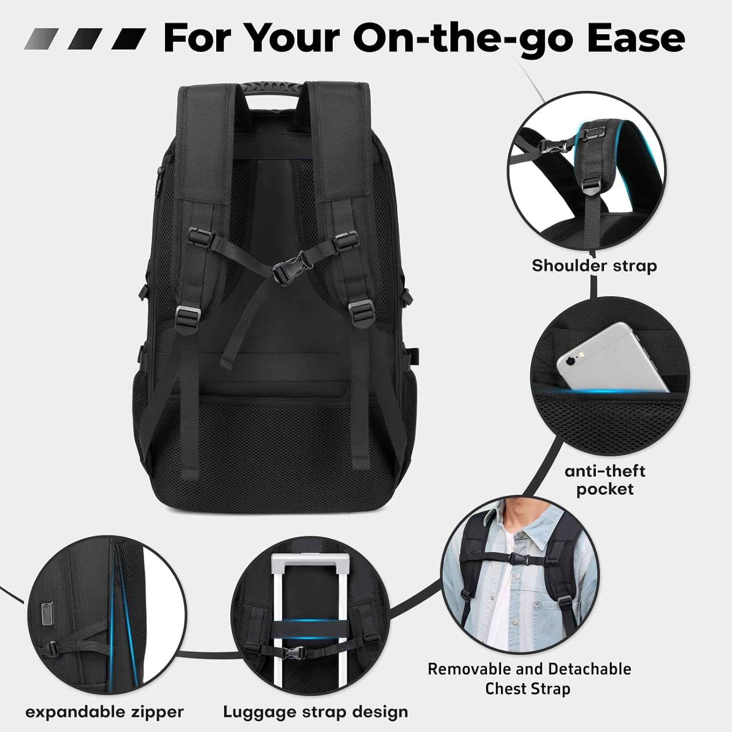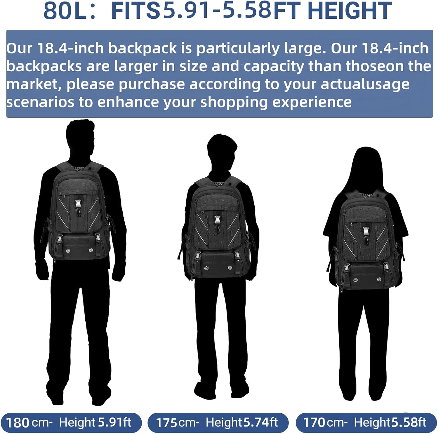 - 🎉【Large Capacity & Spacious】Banlole Extra-Large Travel Backpack comes with over 12 pockets, offering a spacious capacity of up to 80L. With its expandable design, you can unzip it for extra storage space, making it perfect for packing everything you need for a 3-7 day trip. This backpack is sized to meet the carry-on limits for most airlines, fitting easily in both overhead bins and under the seat. It’s ideal for quick weekend getaways or business trips.