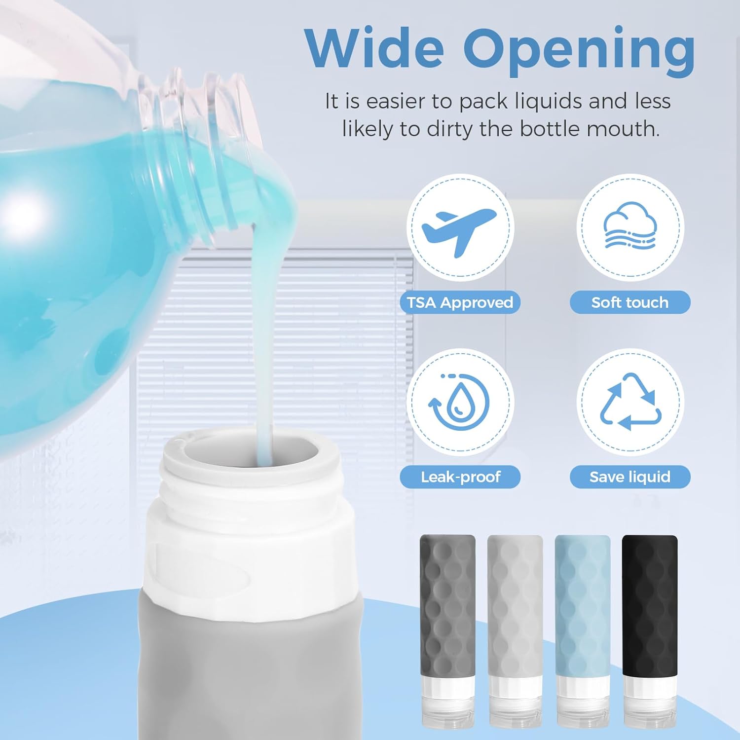 - 【FOOD GRADE BPA FREE SILICONE】Silevoler 16pack Travel Bottles for Toiletries include 4 travel silicone travel bottles made from BPA-free premium silicone, meaning your items won't be contaminated by any toxins. Use your daily personal care items anywhere