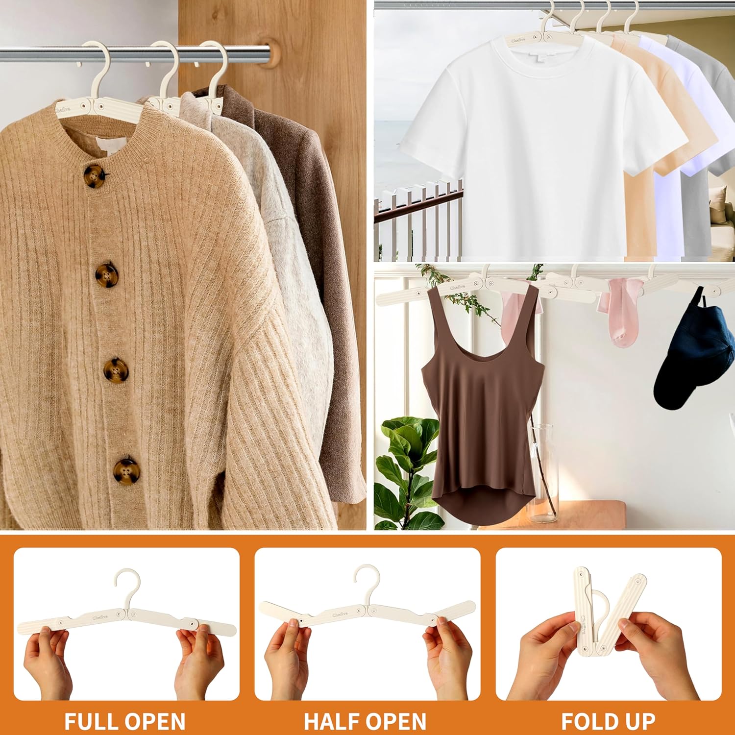 - 【High-Quality & Durable Material】The travel foldable hangers Made from premium, durable white ABS plastic, The folding hangers are built to last. Strong enough to hold your clothes securely, yet the travel hangers are lightweight and easy to pack, ensuring they won’t break or bend during your travels.