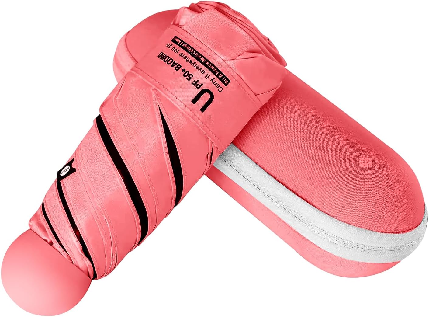 BAODINI Travel Mini Umbrella for Purse With Case Small Compact UV Sun Protection Sun Lightweight Tiny Pocket Umbrella for Women Kids and Men