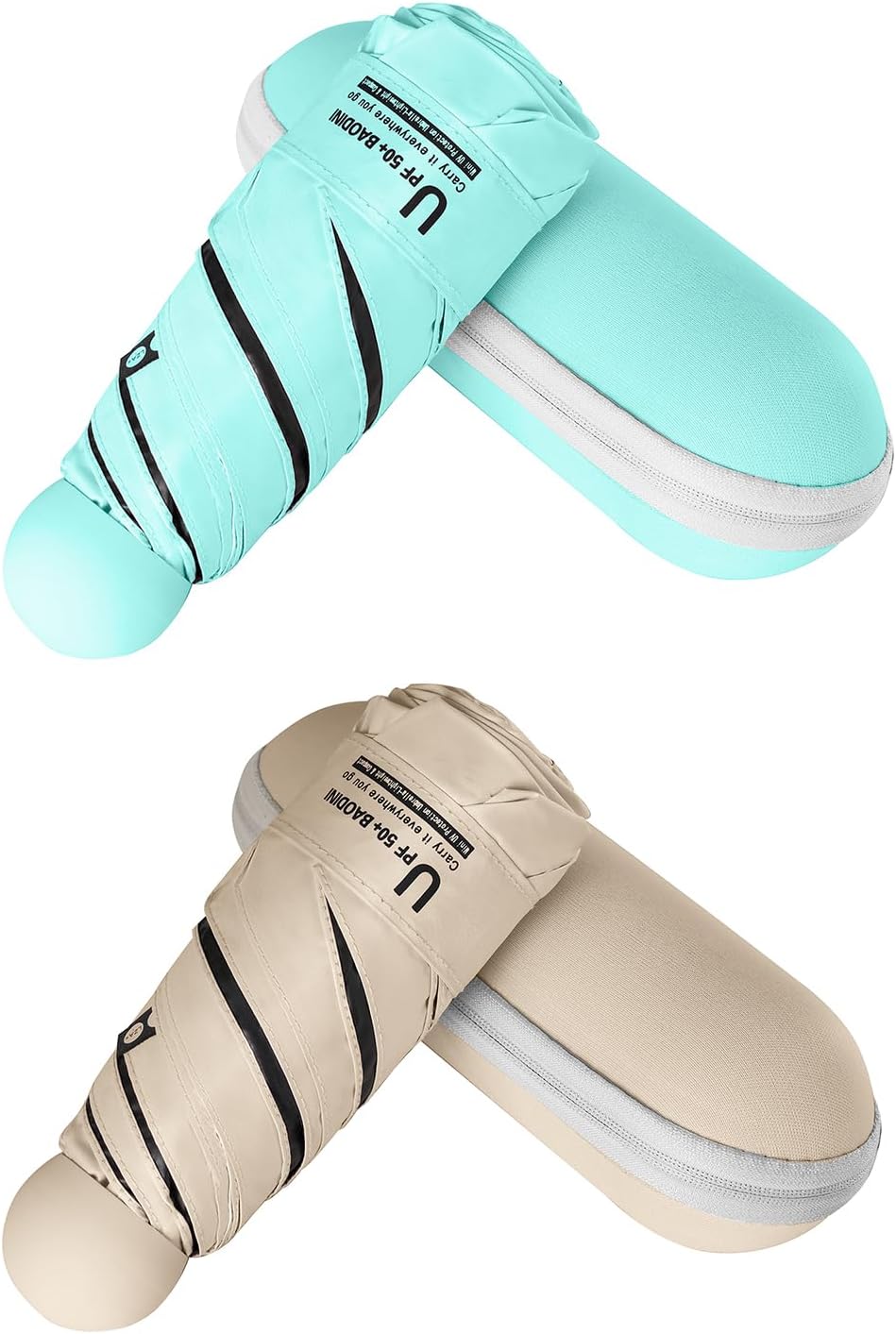 BAODINI Travel Mini Umbrella for Purse With Case Small Compact UV Sun Protection Sun Lightweight Tiny Pocket Umbrella for Women Girls and Men