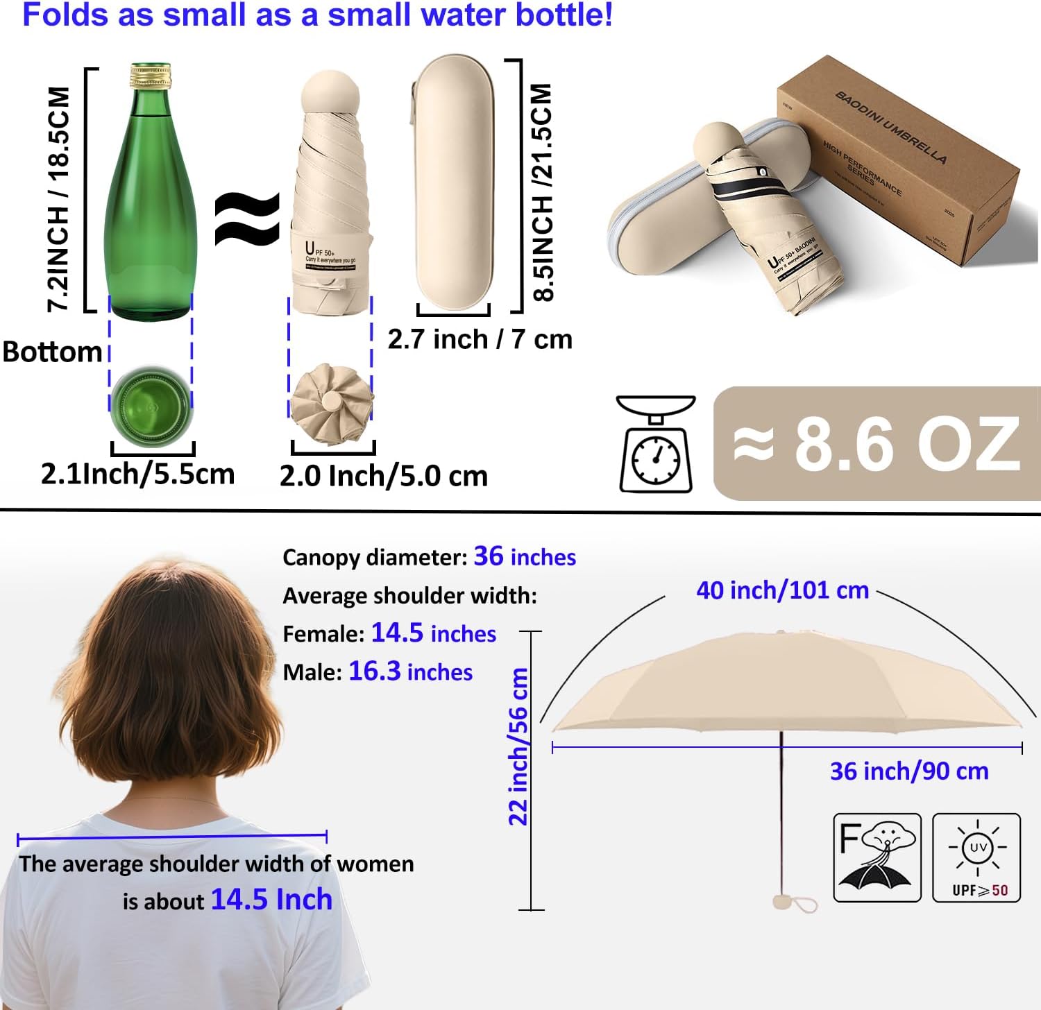 BAODINI Travel Mini Umbrella for Purse With Case Small Compact UV Sun Protection Sun Lightweight Tiny Pocket Manual Open Close Umbrella for Women Kids and Men
