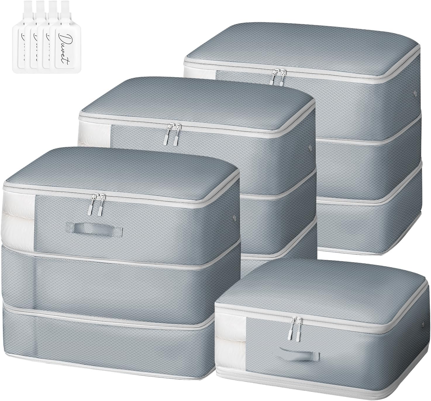 Comforter Storage Bag - Large Capacity Blanket Storage Bags 3-Layer Ultra Space Saving Self Compression Organizer, Washable Compression Bags for Storage Comforter Blanket, 4-Pack, Grey