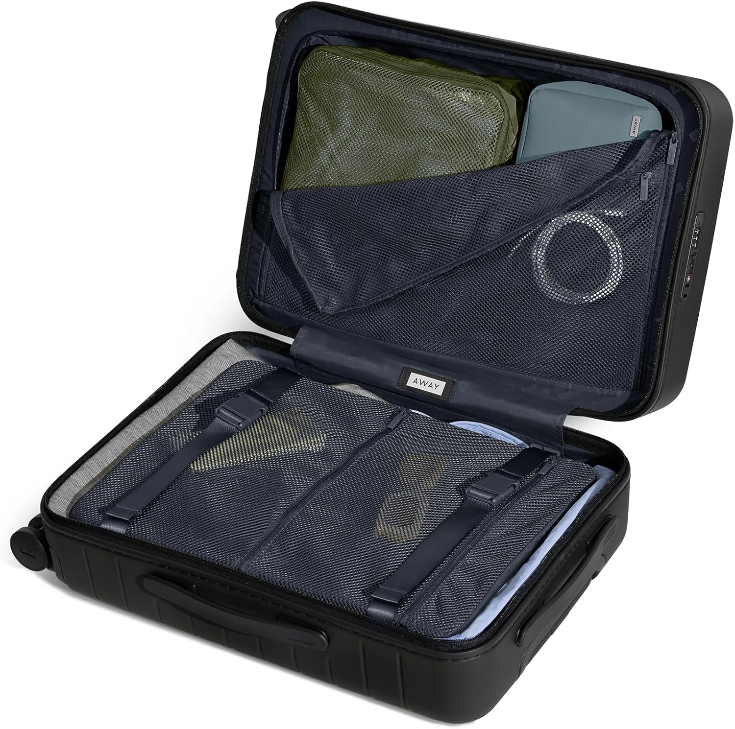 - Lightweight and durable design: Away’s Classic luggage is designed with a durable, water repellent, and lightweight 100% polycarbonate shell. Measuring 15.4"L x 9.6"W x 22.7"H, This carry-on provides ample and secured storage.