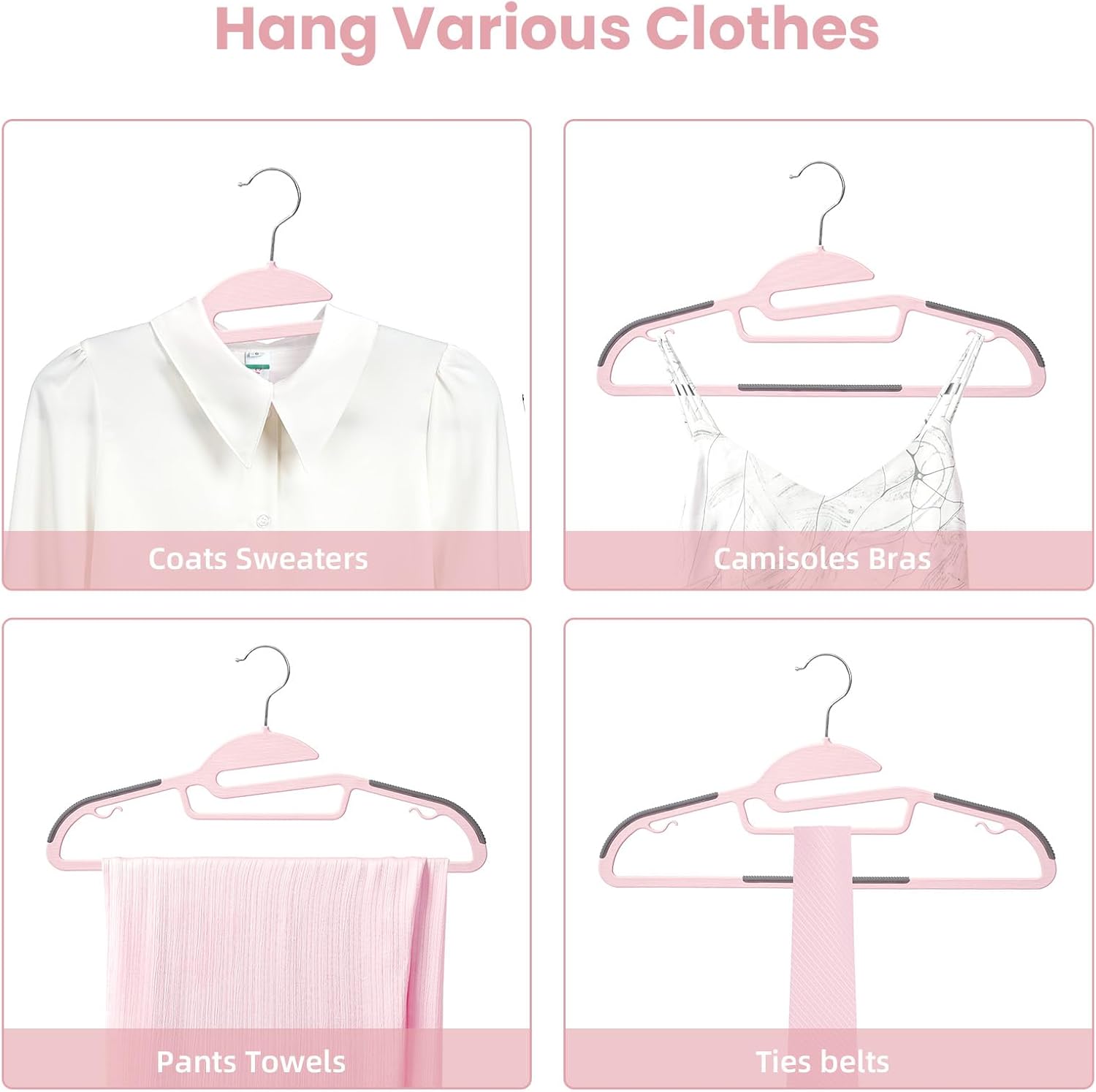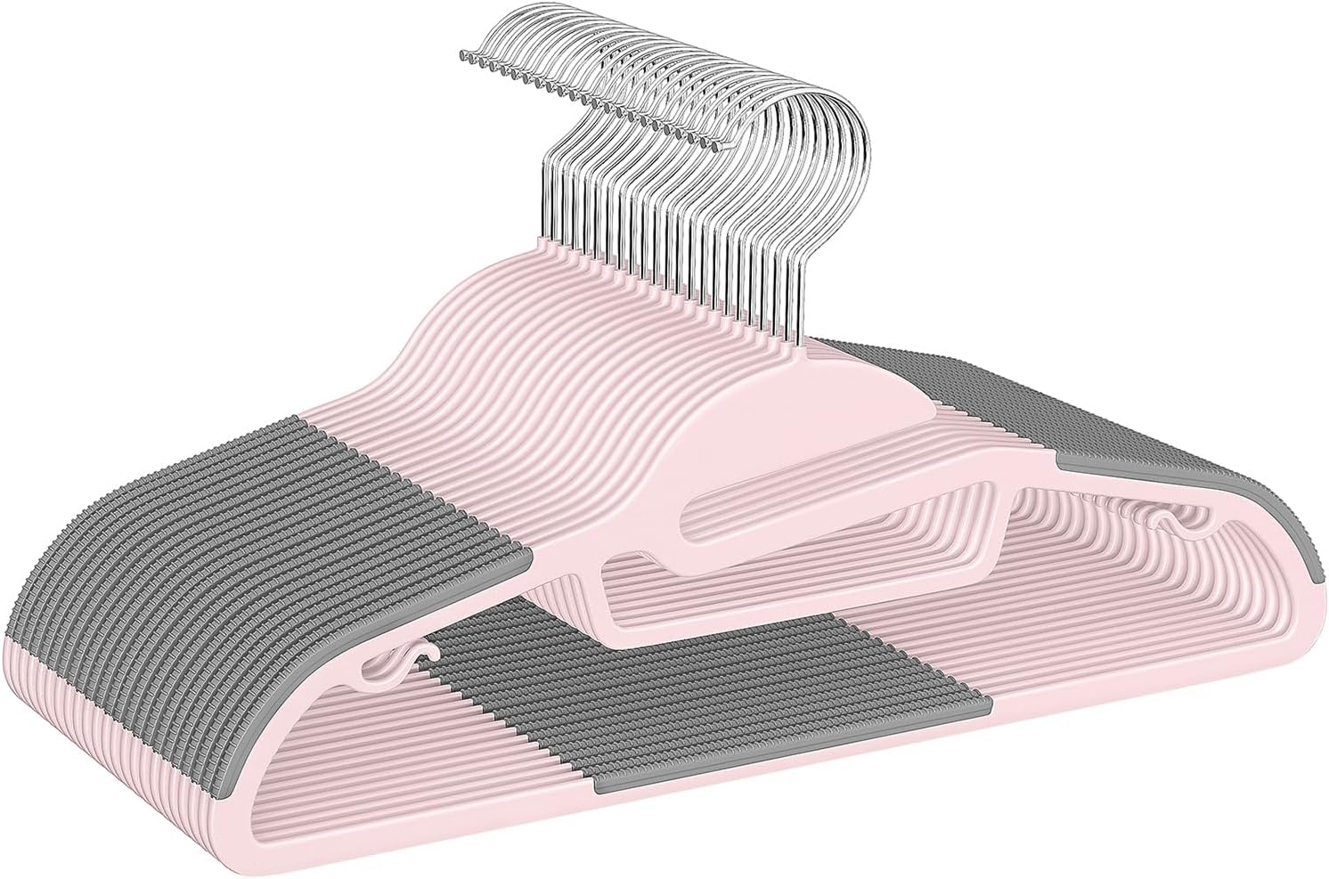 BAGAIL Plastic Hangers 50 Pack with Non-Slip Design,0.2 Inches Thick, 360°Swivel Hook Space Saving Organizer for Bedroom Closet,Shirts,Pants(Pink- S Shaped)