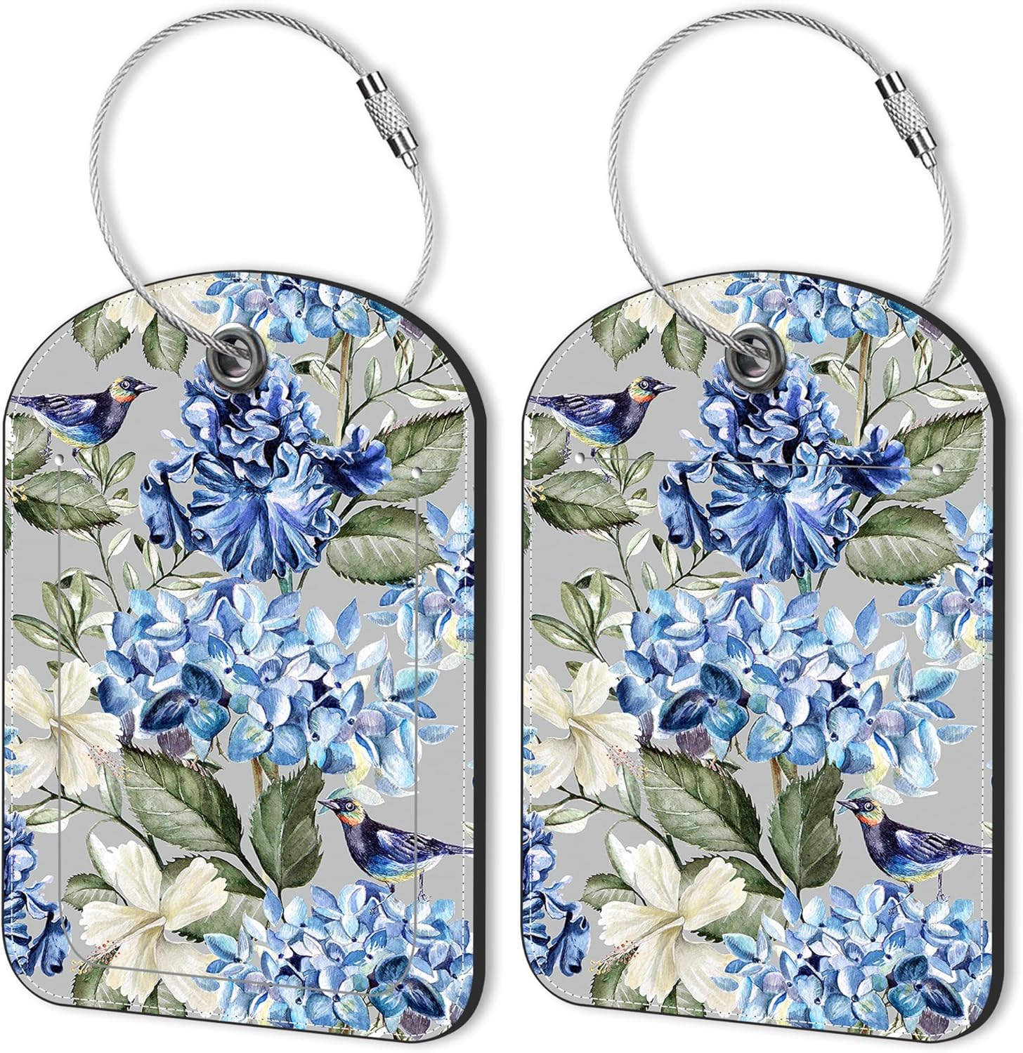 2 PCS Leather Luggage Tags for Suitcase Hibiscus Flowers Bird Travel Luggage Tag with Privacy Flap Name ID Label and Metal Loop for Travel Bag Suitcase