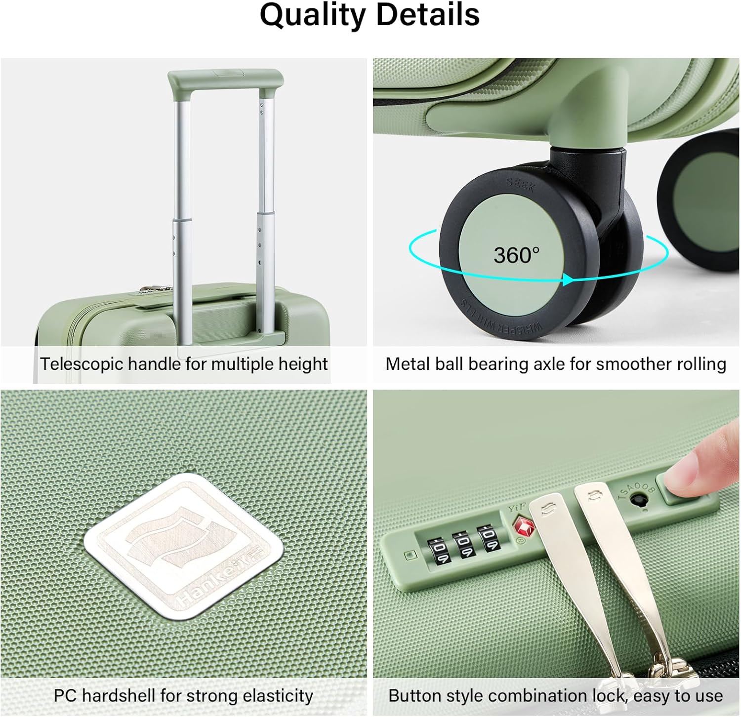 - Durable 3-Layer 100% PC Hard Shell: hanke hardside suitcase delivers exceptional impact resistance without the bulk. The shatterproof material prevents cracking. Lightweight yet 30% tougher than standard carry on luggage materials – perfect for rough baggage handling