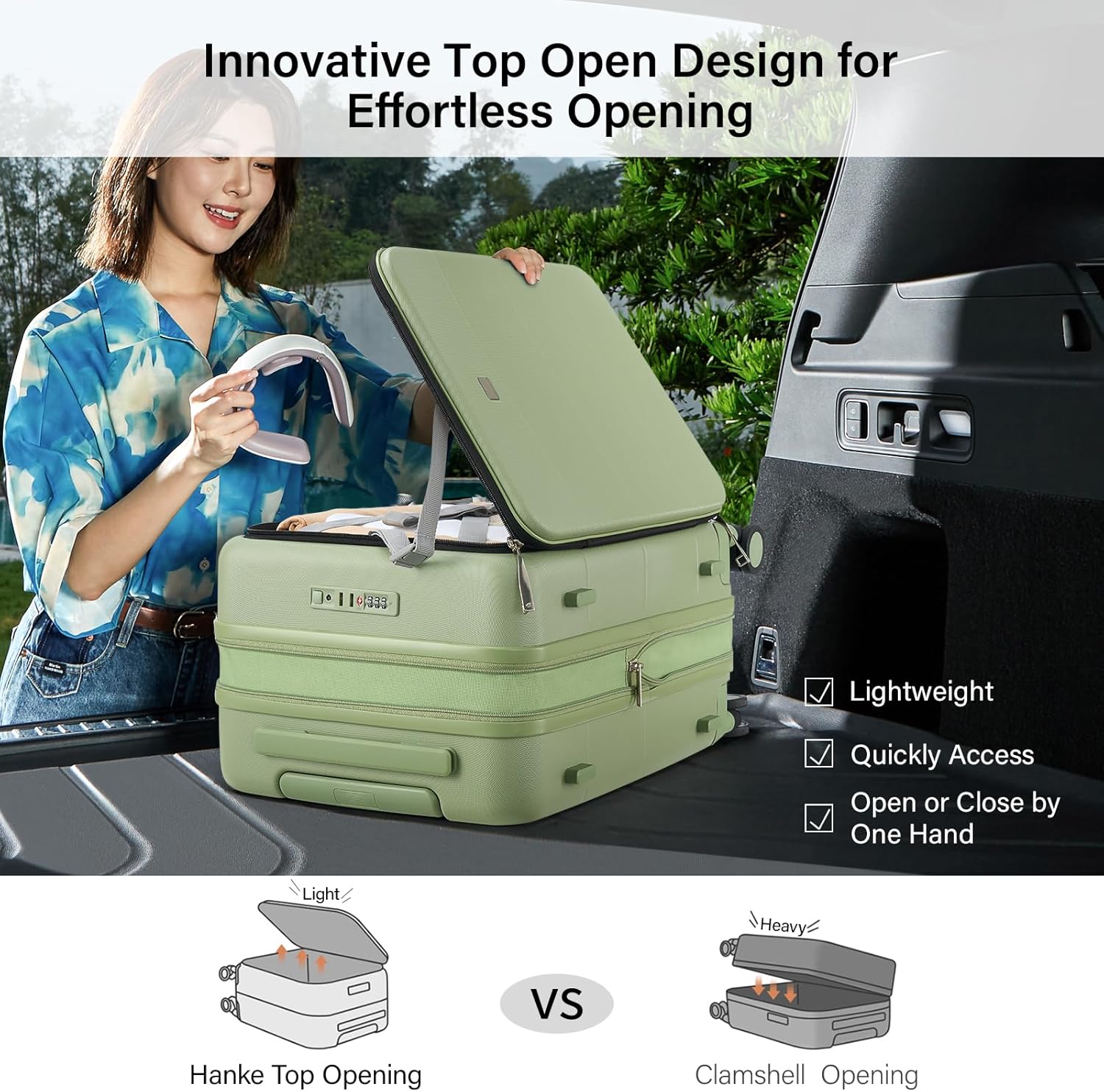 Hanke Hardside Expandable Carry On Luggage, 20 Inch Top Opening Trunk Luggages with Spinner Wheels, All-PC Hard Shell Carry-On Suitcase, Lightweight & TSA Airline Approved (Bamboo Green, 46L)