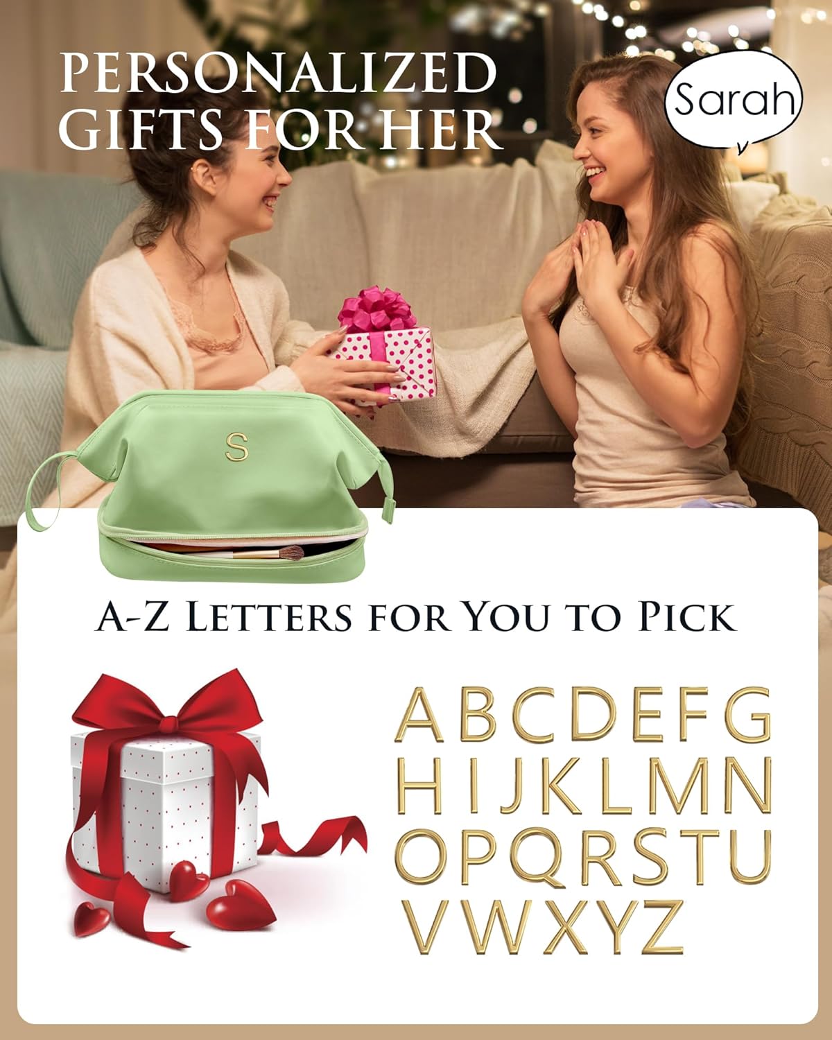 Gift for Everyone,Initial Large Makeup Bag, Bride To Be Gifts, Double Layer Cosmetic Bag, Waterproof PU Travel Toiletry Bag for Bachelorette Party Women Wedding Bridal, Bride Gifts