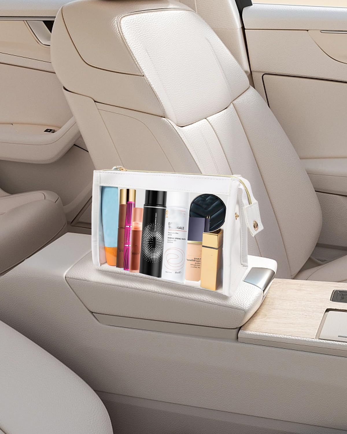 - Waterproof and Easy to Clean: The clear travel toiletry bag is made of water-resistant PU leather, which provides a protective barrier against water and moisture. Only need wiped clean with a damp cloth to keep your travel bags neat and clean. Together with the beautiful stitches and compact leather zippers, is durable for long-lasting use